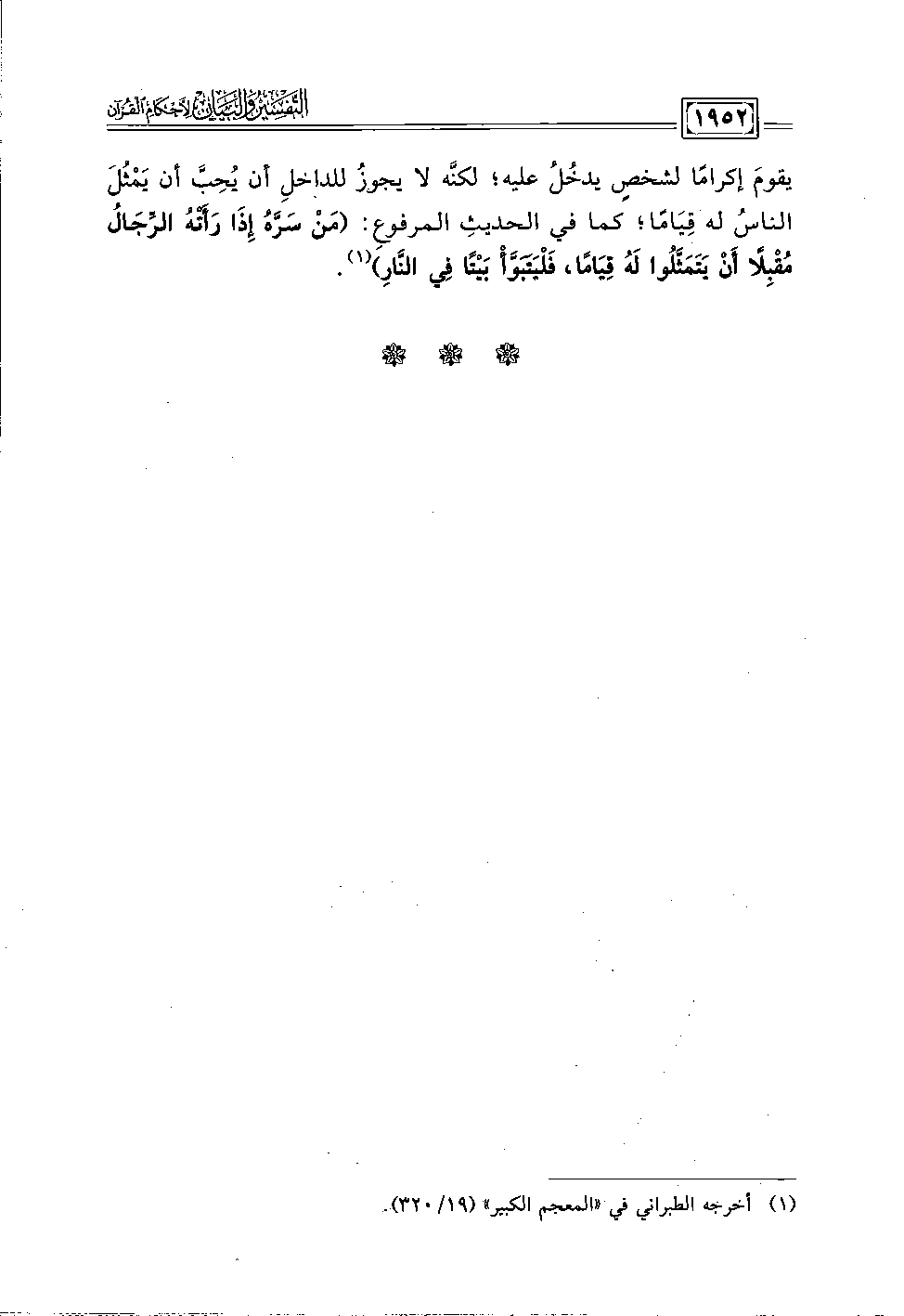 يقومَ إكرامًا لشخصٍ يدخُلُ عليه؛ لكنَّه لا يجوزُ للداخلِ أن يُحِبَّ أن يَمْثُلَ الناسُ له قِيَامًا؛ كما في الحديثِ المرفوعِ: (مَنْ سَرَّهُ إِذَا رَأَتْهُ الرِّجَالُ مُقْبِلًا أَنْ يَتَمَثَّلُوا لَهُ قِيَامًا، فَلْيَتَبَوَّأْ بَيْتًا فِي النَّارِ) (١).