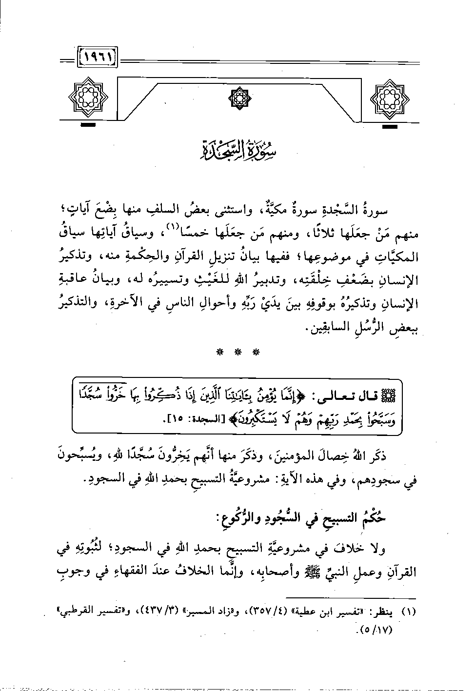 * قال تعالى: {إِنَّمَا يُؤْمِنُ بِآيَاتِنَا الَّذِينَ إِذَا ذُكِّرُوا بِهَا خَرُّوا سُجَّدًا وَسَبَّحُوا بِحَمْدِ رَبِّهِمْ وَهُمْ لَا يَسْتَكْبِرُونَ} [السجدة: ١٥].