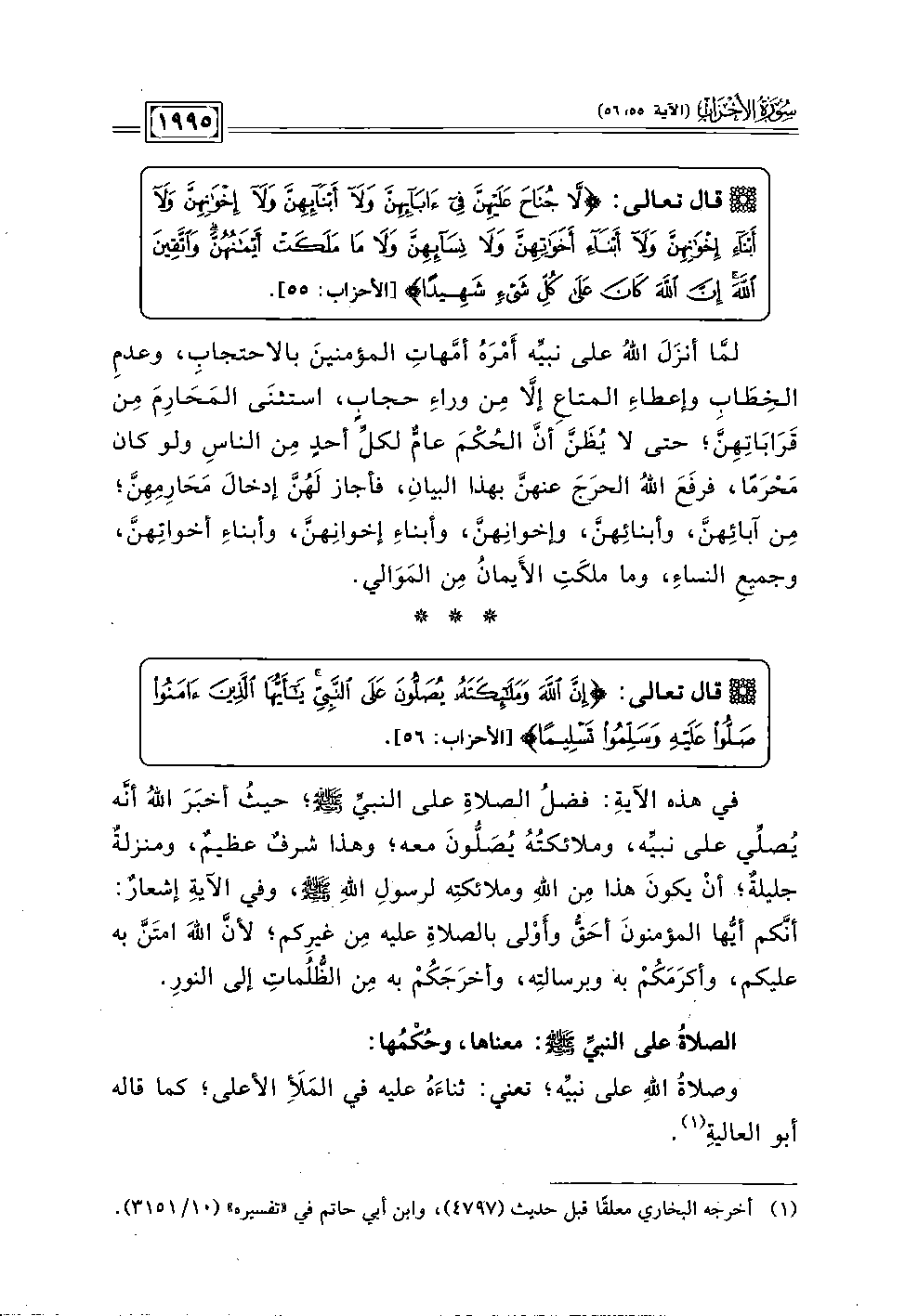 * قال تعالى: {إِنَّ اللَّهَ وَمَلَائِكَتَهُ يُصَلُّونَ عَلَى النَّبِيِّ يَاأَيُّهَا الَّذِينَ آمَنُوا صَلُّوا عَلَيْهِ وَسَلِّمُوا تَسْلِيمًا (٥٦)} [الأحزاب ٥٦].