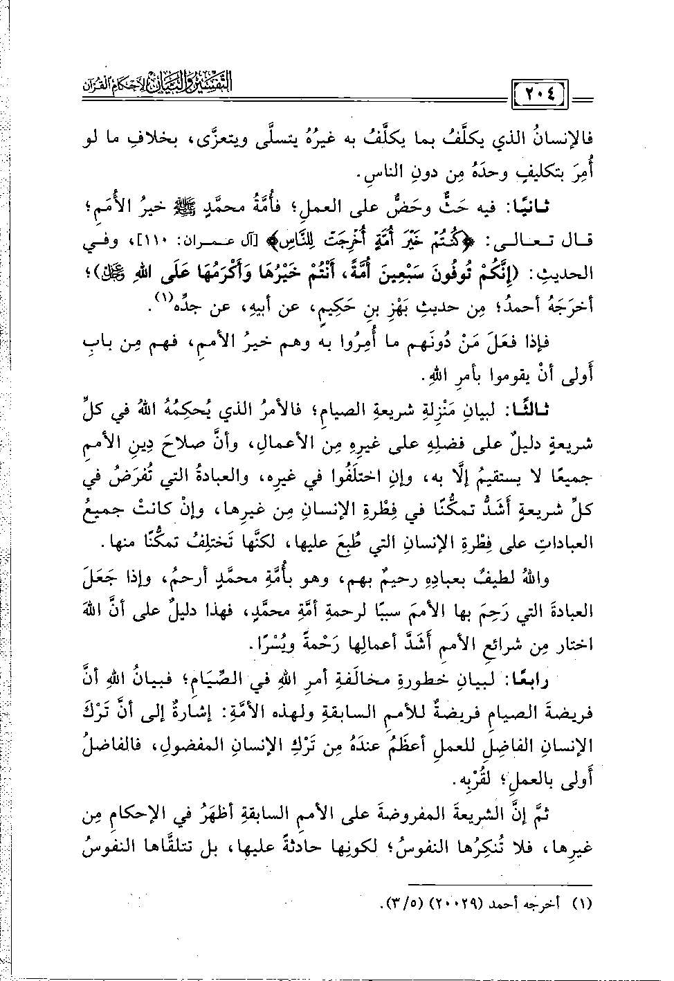 ثالثًا: لبيانِ مَنْزِلةِ شريعةِ الصيامِ؛ فالأمرُ الذي يُحكِمُهُ اللهُ في كلِّ شريعةٍ دليلٌ على فضلِهِ على غيرِهِ مِن الأعمالِ، وأنَّ صلاحَ دِينِ الأممِ جميعًا لا يستقيمُ إلَّا به، وإنِ اختلَفُوا في غيرِه، والعبادةُ التي تُفرَضُ في كلِّ شريعةٍ أَشَدُّ تمكُّنًا في فِطْرةِ الإنسانِ مِن غيرِها، وإنْ كانتْ جميعُ العباداتِ على فِطْرةِ الإنسانِ التي طُبعَ عليها، لكنَّها تَختلِفُ تمكُّنًا منها.