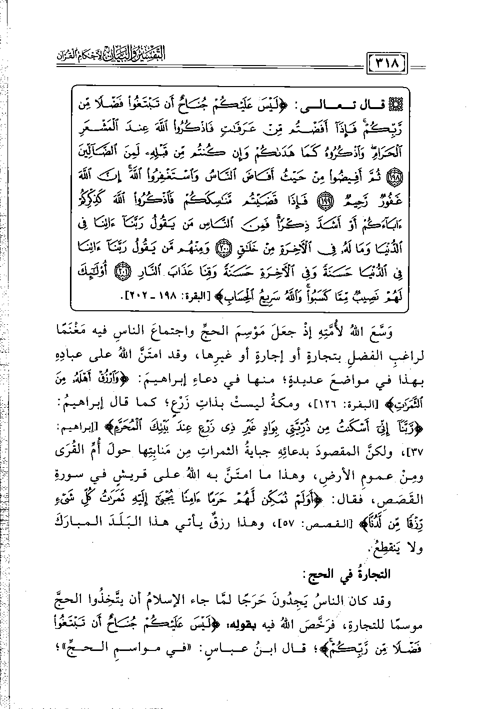 وقد كان الناسُ يَجِدُونَ حَرَجًا لمَّا جاء الإسلامُ أن يتَّخِذُوا الحجَّ موسمًا للتجارةِ، فرَخَّصَ اللهُ فيه بقولِه: {لَيْسَ عَلَيْكُمْ جُنَاحٌ أَنْ تَبْتَغُوا فَضْلًا مِنْ رَبِّكُمْ}؛ قال ابنُ عباسٍ: "في مواسمِ الحجِّ"؛