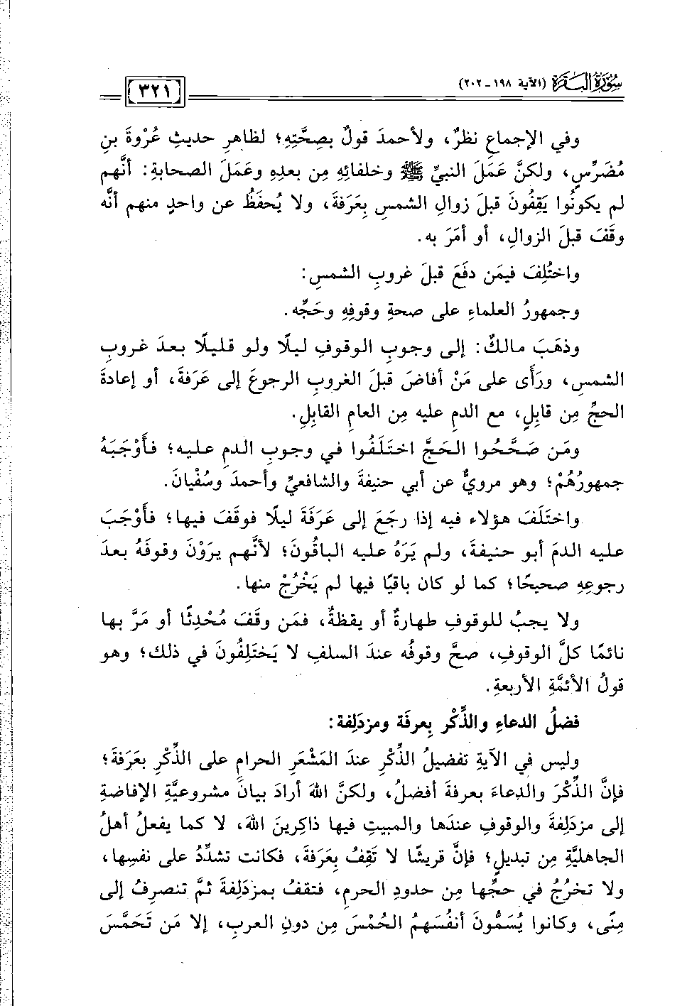 وليس في الآيةِ تفضيلُ الذِّكْرِ عندَ المَشْعرَ الحرامِ على الذِّكْرِ بعَرَفةَ؛ فإنَّ الذِّكْرَ والدعاءَ بعرفةَ أفضلُ، ولكنَّ اللهَ أرادَ بيانَ مشروعيَّةِ الإفاضةِ إلى مزدَلِفةَ والوقوفِ عندَها والمبيتِ فيها ذاكِرينَ اللهَ، لا كما يفعلُ أهلُ الجاهليَّةِ مِن تبديلٍ؛ فإنَّ قريشًا لا تَقِفُ بِعَرَفةَ، فكانت تشدِّدُ على نفسِها، ولا تخرُجُ في حجِّها مِن حدودِ الحرمِ، فتقفُ بمزدَلِفةَ ثمَّ تنصرِفُ إلى مِنًى، وكانوا يُسَمُّونَ أنفُسَهمُ الحُمْسَ مِن دونِ العربِ، إلا مَن تَحَمَّسَ