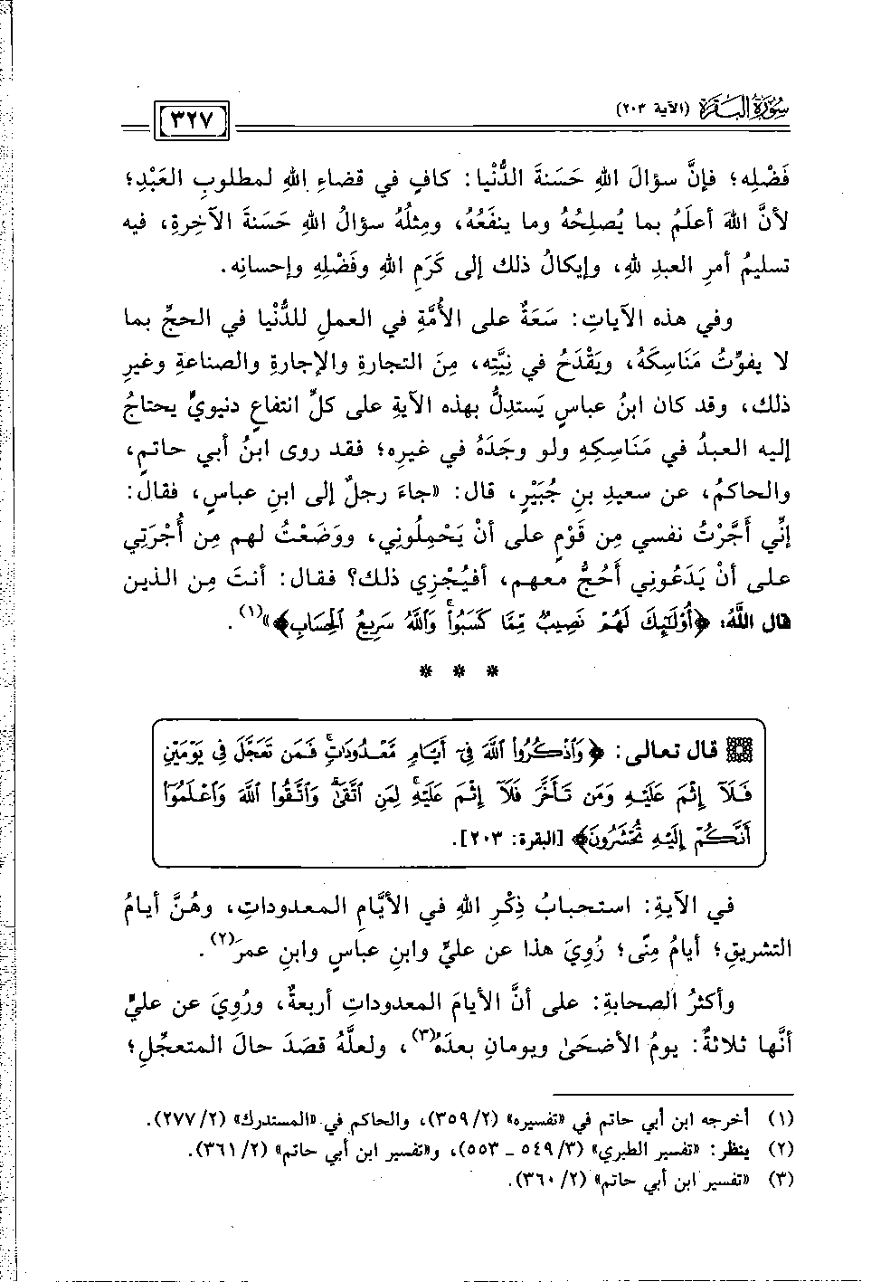 قال تعالى: {وَاذْكُرُوا اللَّهَ فِي أَيَّامٍ مَعْدُودَاتٍ فَمَنْ تَعَجَّلَ فِي يَوْمَيْنِ فَلَا إِثْمَ عَلَيْهِ وَمَنْ تَأَخَّرَ فَلَا إِثْمَ عَلَيْهِ لِمَنِ اتَّقَى وَاتَّقُوا اللَّهَ وَاعْلَمُوا أَنَّكُمْ إِلَيْهِ تُحْشَرُونَ} [البقرة: ٢٠٣].