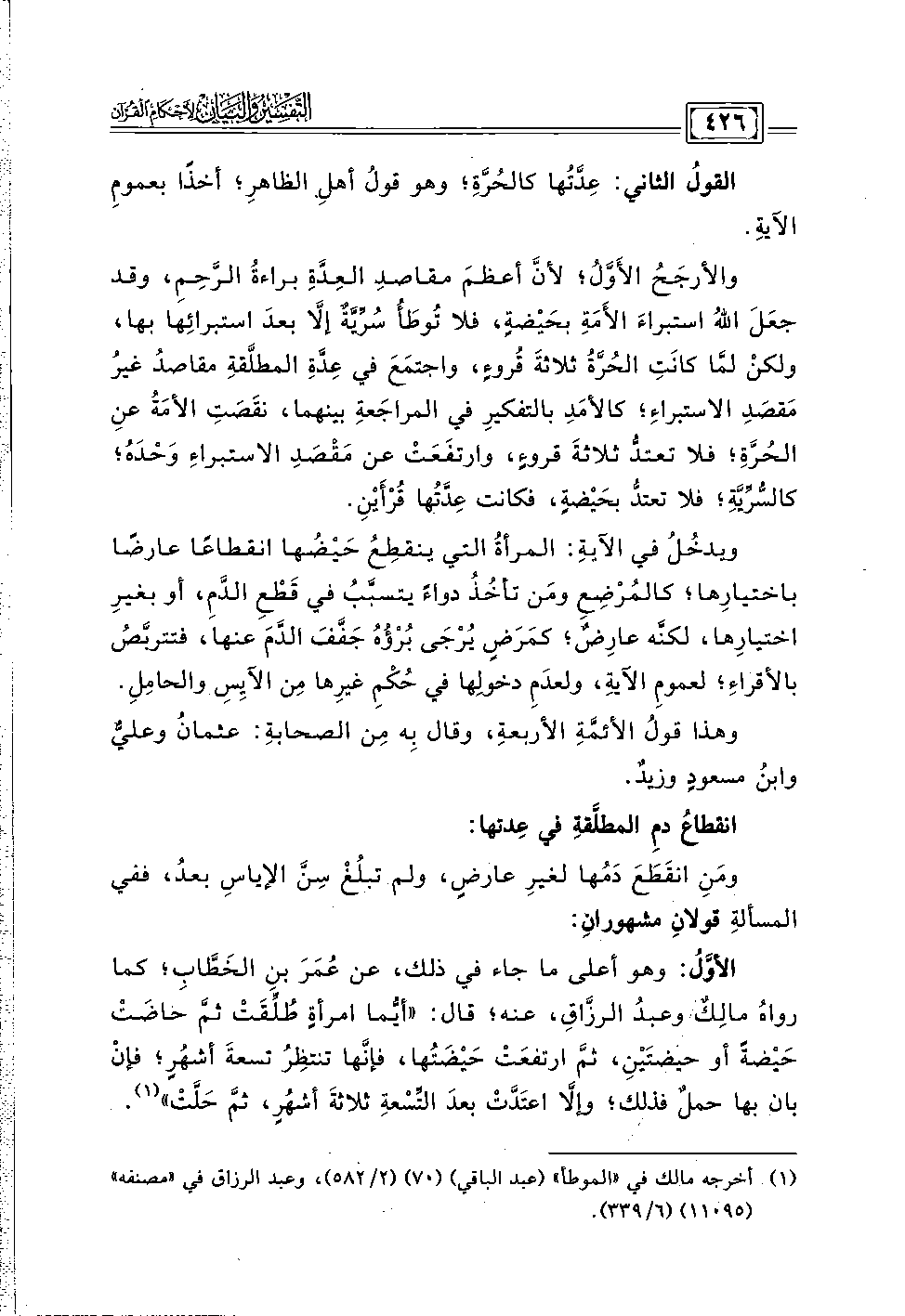 والأرجَحُ الأَوَّلُ؛ لأنَّ أعظمَ مقاصدِ العِدَّةِ براءةُ الرَّحِمِ، وقد جعَلَ اللهُ استبراءَ الأَمَةِ بحَيْضةٍ، فلا تُوطَأُ سُرِّيَّةٌ إلَّا بعدَ استبرائِها بها، ولكنْ لمَّا كانَتِ الحُرَّةُ ثلاثةَ قُروءٍ، واجتمَعَ في عِدَّةِ المطلَّقةِ مقاصدُ غيرُ مَقصَدِ الاستبراءِ؛ كالأمَدِ بالتفكيرِ في المراجَعةِ بينهما، نقَصَتِ الأمَةُ عنِ الحُرَّةِ؛ فلا تعتدُّ ثلاثةَ قروءٍ، وارتفَعَتْ عن مَقْصَدِ الاستبراءِ وَحْدَهُ؛ كالسُّرِّيَّةِ؛ فلا تعتدُّ بحَيْضةٍ، فكانت عِدَّتُها قُرْأَيْنِ.