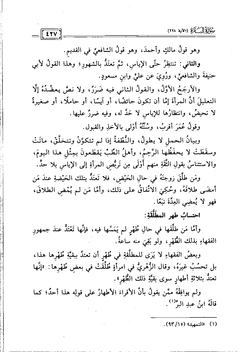 ولم يوافِقْهُ ممَّن يقولُ بأنَّ الأقراءَ الأطهارُ على قولِه هذا أحدٌ؛ كما قالَهُ ابنُ عبدِ البرِّ (١).