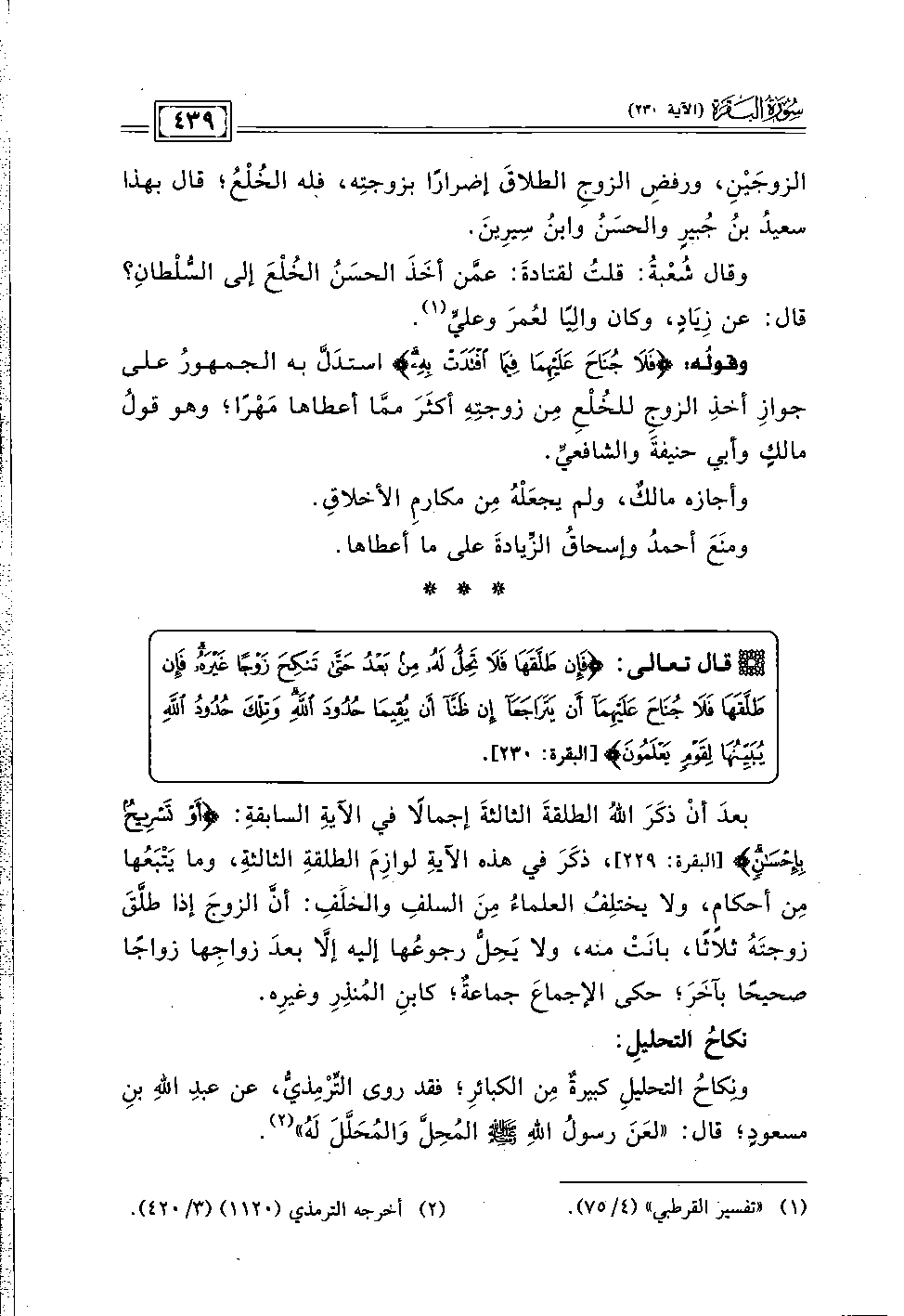 قال تعالى: {فَإِنْ طَلَّقَهَا فَلَا تَحِلُّ لَهُ مِنْ بَعْدُ حَتَّى تَنْكِحَ زَوْجًا غَيْرَهُ فَإِنْ طَلَّقَهَا فَلَا جُنَاحَ عَلَيْهِمَا أَنْ يَتَرَاجَعَا إِنْ ظَنَّا أَنْ يُقِيمَا حُدُودَ اللَّهِ وَتِلْكَ حُدُودُ اللَّهِ يُبَيِّنُهَا لِقَوْمٍ يَعْلَمُونَ} [البقرة: ٢٣٠].