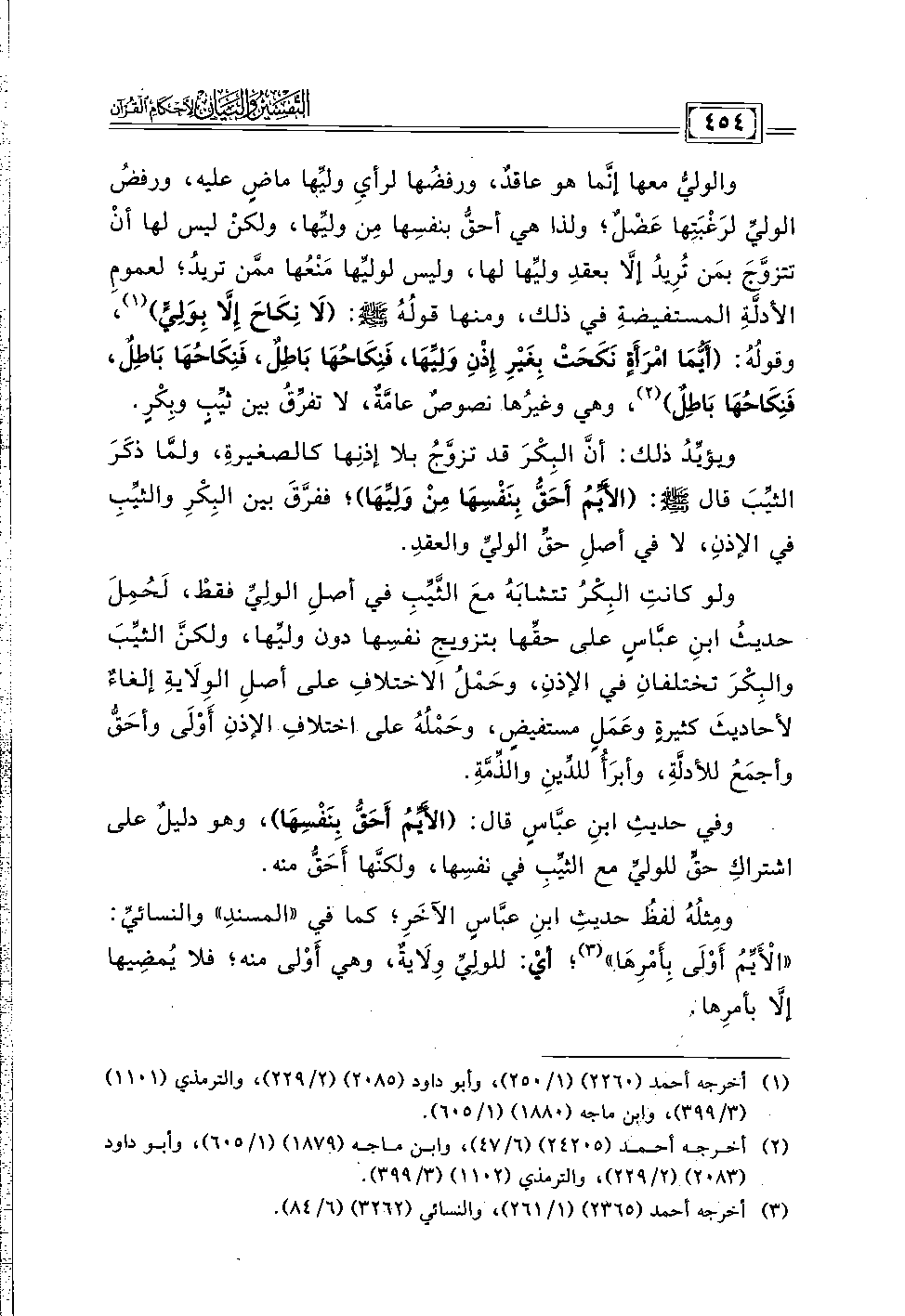 ومِثلُهُ لفظُ حديثِ ابنِ عبَّاسٍ الآخَرِ؛ كما في "المسندِ" والنسائيِّ: "الْأَيِّمُ أَوْلَى بِأَمْرِهَا" (٣)؛ أيْ: للولِيِّ وِلَايةٌ، وهي أَوْلى منه؛ فلا يُمضِيها إلَّا بأمرِها.