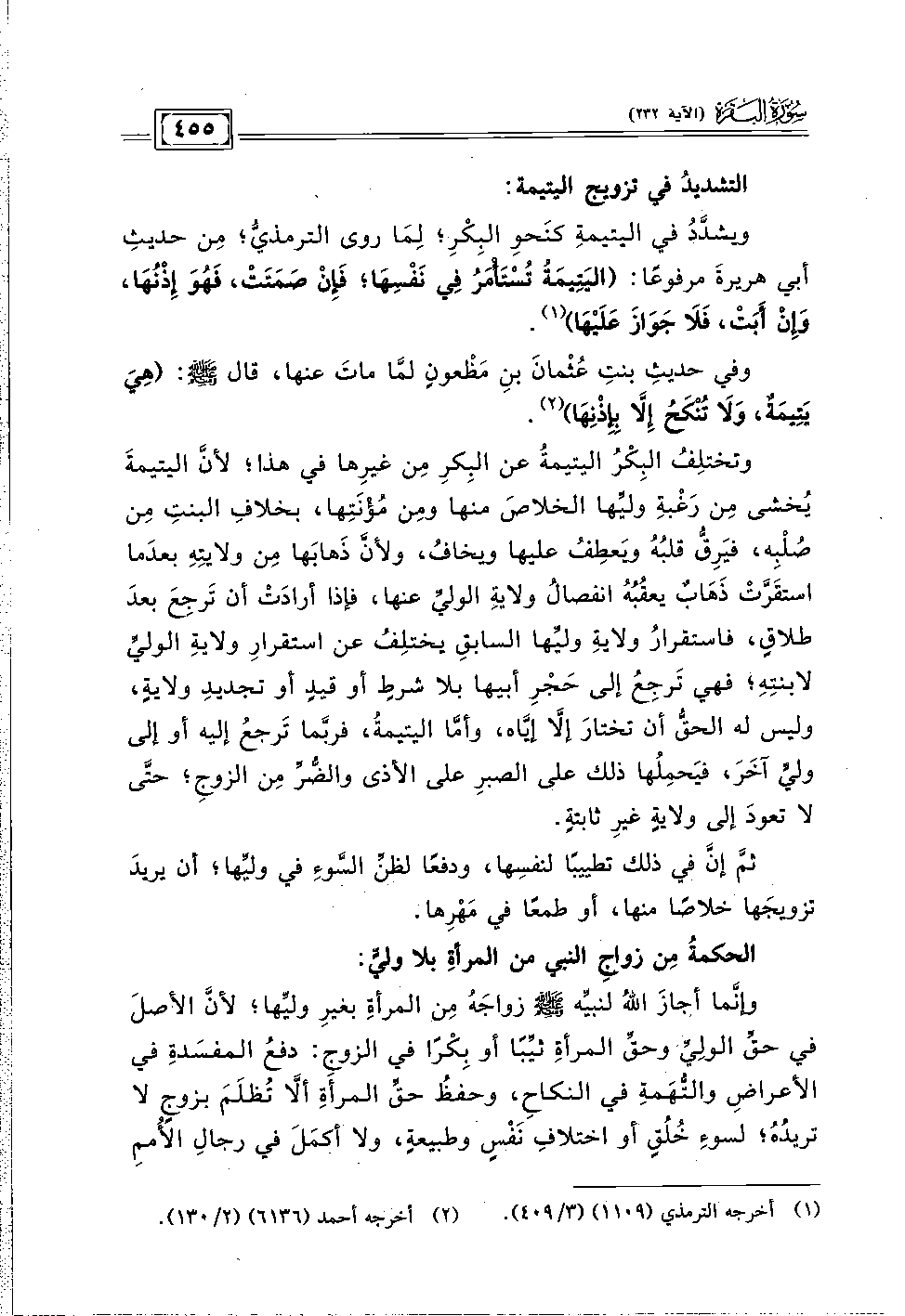 التشديدُ في تزويج اليتيمة: