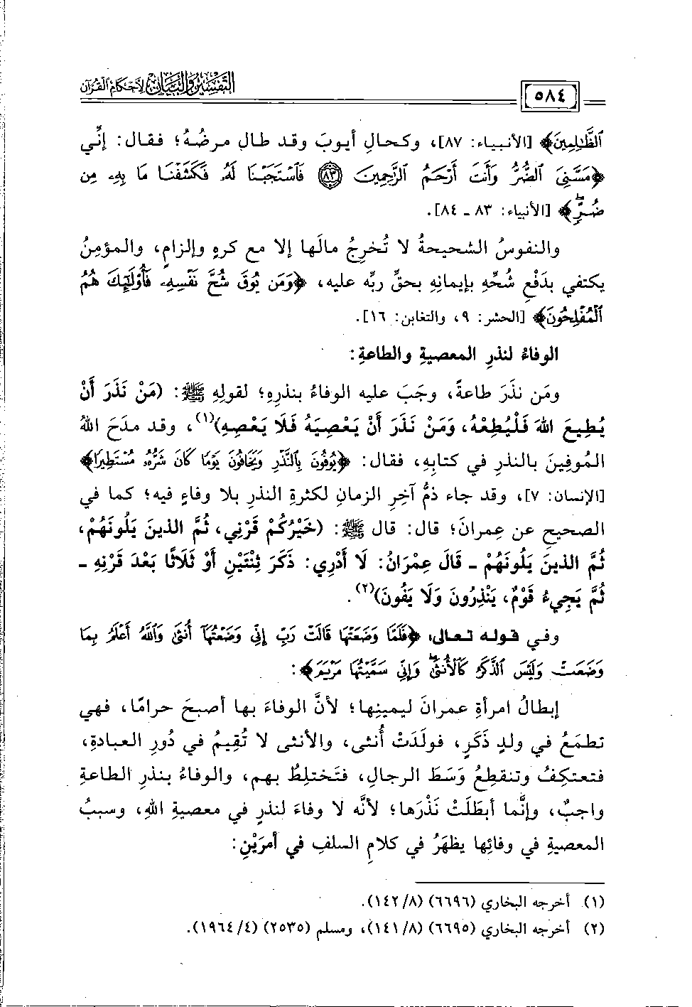 الوفاءُ لنذرِ المعصيةِ والطاعةِ: