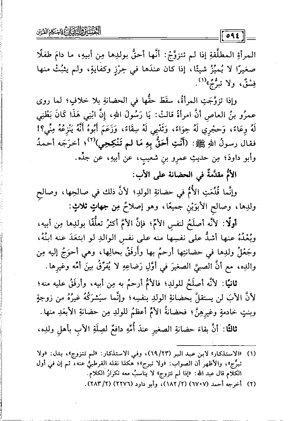 الأمُّ مقدَّمةٌ في الحضانة على الأب: