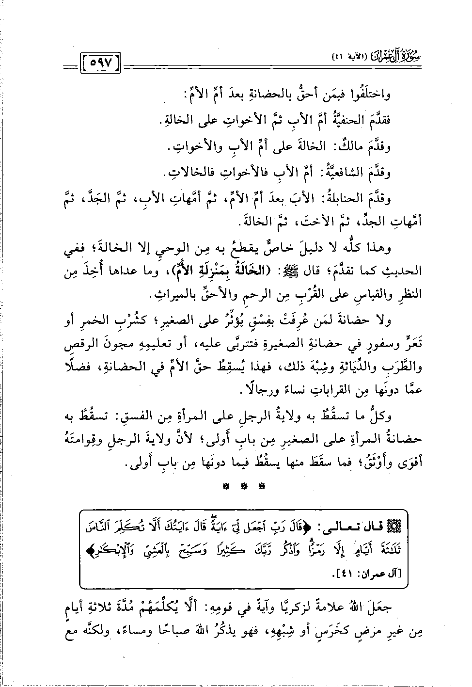 قال تعالى: {قَالَ رَبِّ اجْعَلْ لِي آيَةً قَالَ آيَتُكَ أَلَّا تُكَلِّمَ النَّاسَ ثَلَاثَةَ أَيَّامٍ إِلَّا رَمْزًا وَاذْكُرْ رَبَّكَ كَثِيرًا وَسَبِّحْ بِالْعَشِيِّ وَالْإِبْكَارِ (٤١)} [آل عمران: ٤١].