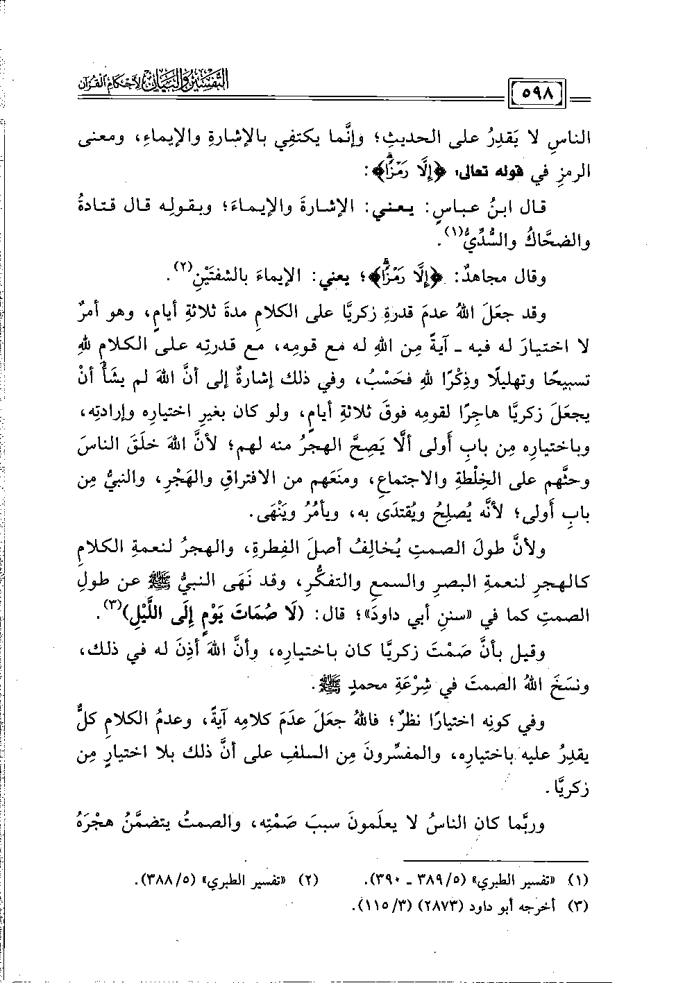 وفي كونِه اختيارًا نظرٌ؛ فاللهُ جعَلَ عدَمَ كلامِه آية، وعدمُ الكلامِ كلُّ يقدِرُ عليه باختيارِه، والمفسِّرونَ مِن السلفِ على أنَّ ذلك بلا اختيارٍ مِن زكريَّا.