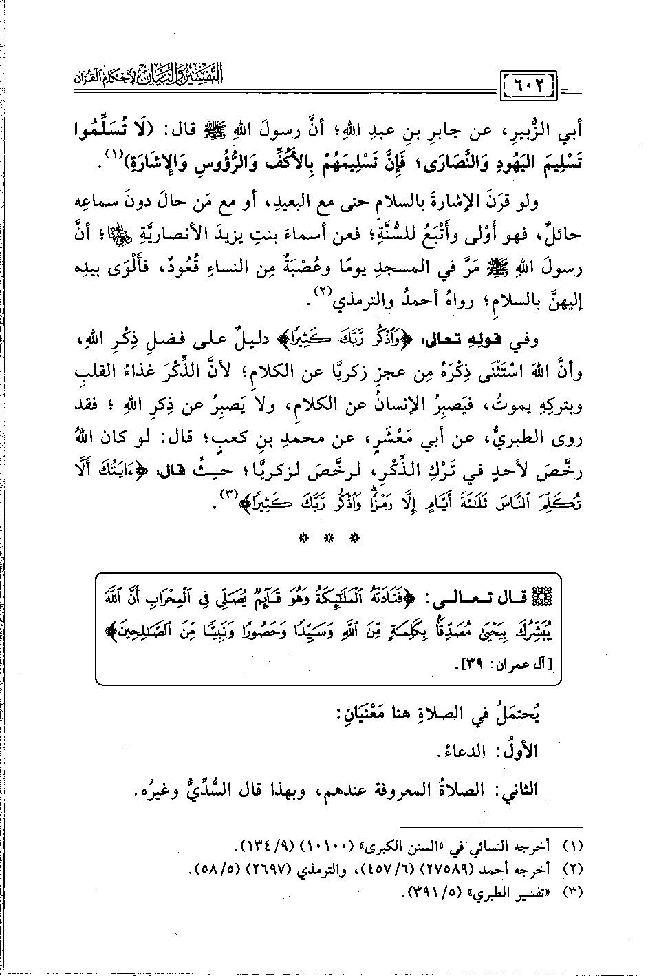 أبي الزُّبيرِ، عن جابرِ بنِ عبدِ اللهِ؛ أن رسولَ اللهِ - صلى الله عليه وسلم - قال: (لَا تُسَلِّمُوا تَسْلِيمَ اليَهُودِ وَالنَّصَارَى؛ فَإن تَسْلِيمَهُمْ بِالأَكُفِّ وَالرُّؤُوسِ وَالإِشَارَةِ) (١).