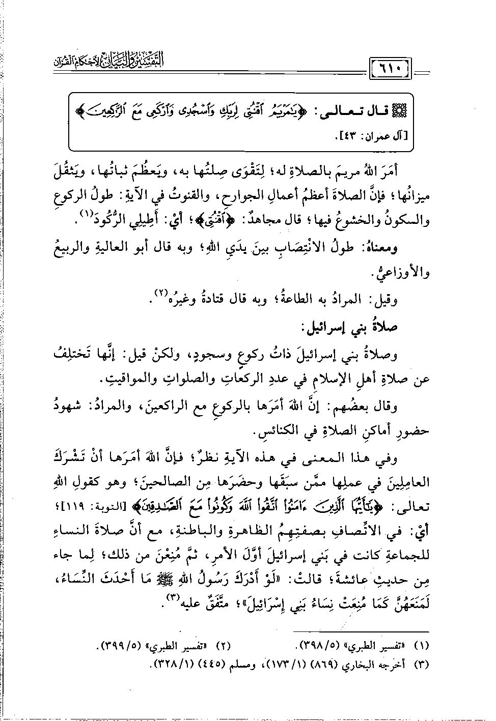 قال تعالى {يَامَرْيَمُ اقْنُتِي لِرَبِّكِ وَاسْجُدِي وَارْكَعِي مَعَ الرَّاكِعِينَ (٤٣)} [آل عمران: ٤٣].
