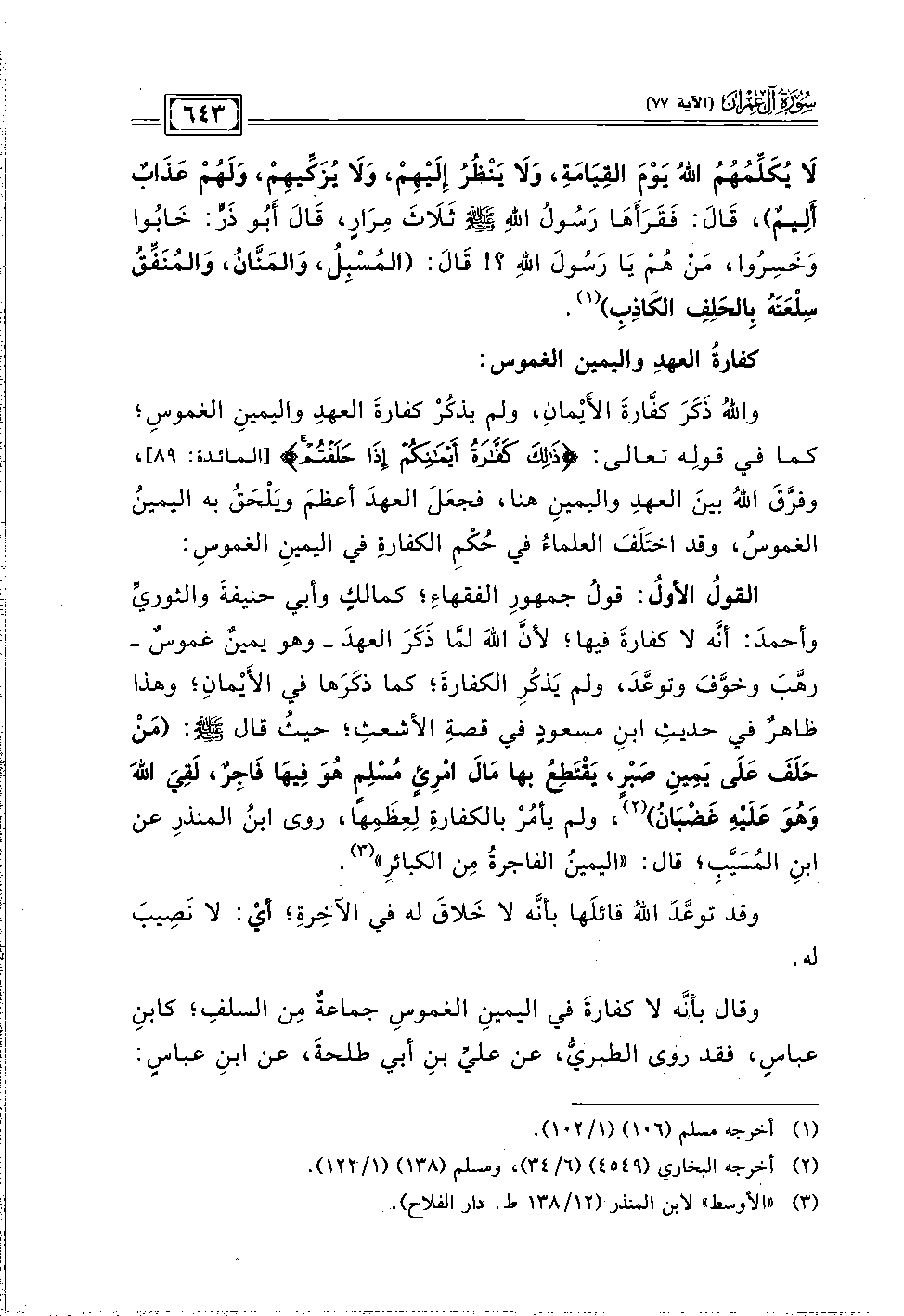 (٣) "الأوسط" لابن المنذر (١٢/ ١٣٨ ط. دار الفلاح).