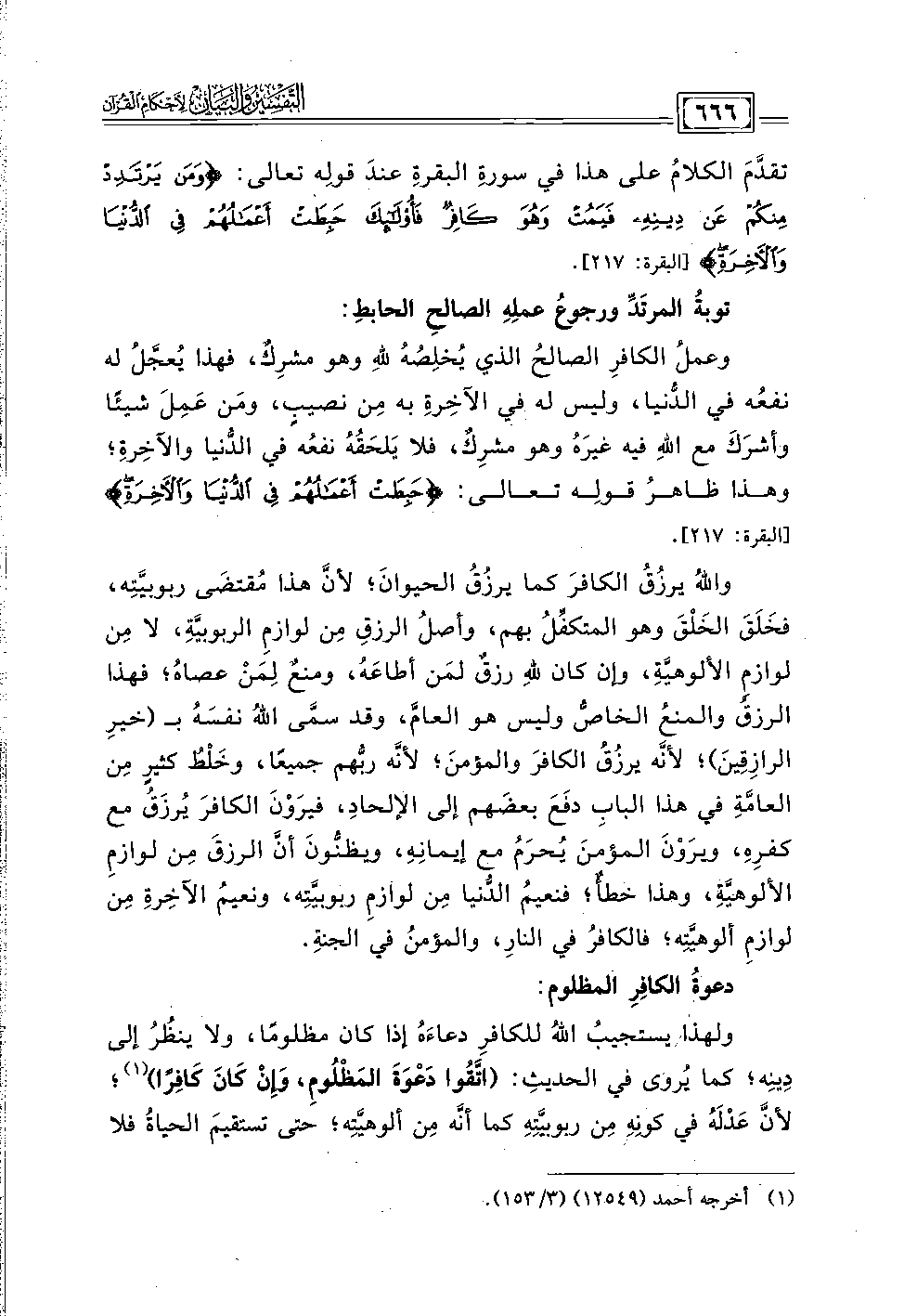 تقدَّمَ الكلامُ على هذا في سورةِ البقرةِ عندَ قولِه تعالى: {وَمَنْ يَرْتَدِدْ مِنْكُمْ عَنْ دِينِهِ فَيَمُتْ وَهُوَ كَافِرٌ فَأُولَئِكَ حَبِطَتْ أَعْمَالُهُمْ فِي الدُّنْيَا وَالْآخِرَةِ} [البقرة: ٢١٧].
