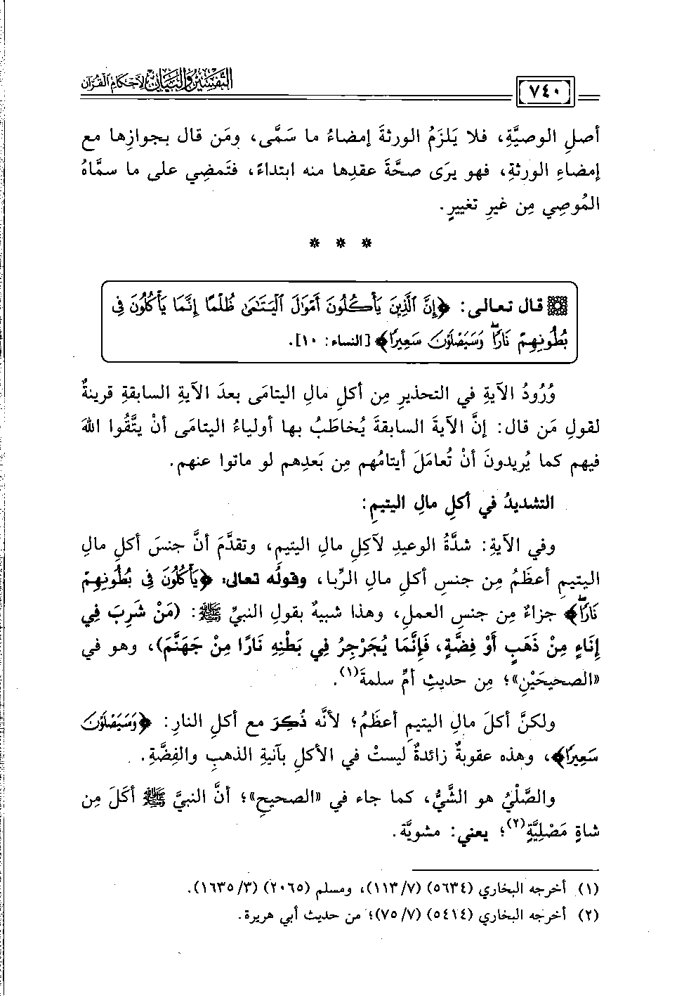 التشديدُ في أكلِ مالِ اليتيمِ: