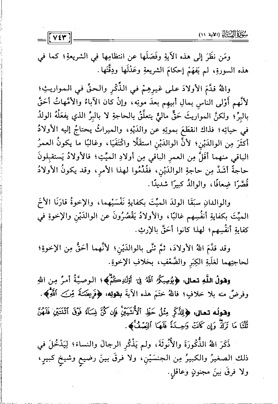 وقد قدَّمَ اللهُ الأولادَ، ثمَّ ثنَّى بالوالدَيْنِ؛ لأنَّهما أحَقُّ مِن الإخوةِ؛ لحاجتِهما لغلَبةِ الكِبَرِ والضَّعْفِ، بخلافِ الإخوةِ.