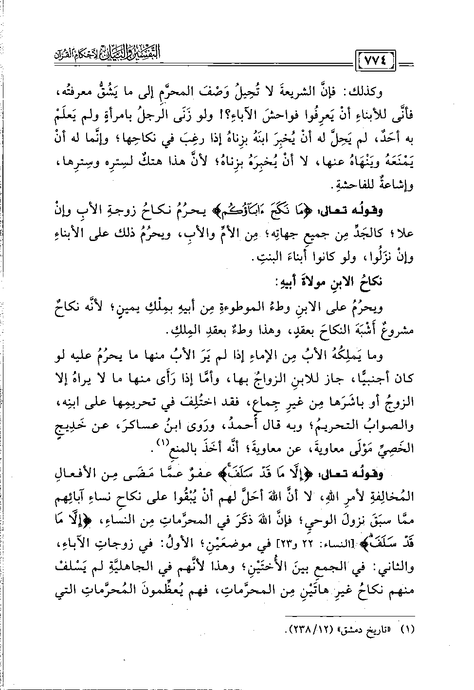 وقولُه: تعالى: {إِلَّا مَا قَدْ سَلَفَ} عفوٌ عمَّا مَضَى مِن الأفعالِ المُخالِفةِ لأمرِ الله، لا أنَّ اللهَ أحَلَّ لهم أنْ يُبْقُوا على نكاحِ نساءِ آبائِهم ممَّا سبَقَ نزولَ الوحيِ؛ فإنَّ اللهَ ذكَرَ في المحرَّماتِ مِن النساء، {إِلَّا مَا قَدْ سَلَفَ} [النساء: ٢٢ و ٢٣] في موضعَيْنِ؛ الأولُ: في زوجاتِ الآباء، والثاني: في الجمعِ بينَ الأُختَيْن، وهذا لأنَّهم في الجاهليَّةِ لم يَسْلفْ منهم نكاحُ غيرِ هاتَيْنِ مِن المحرَّمات، فهم يُعظِّمونَ المُحرَّماتِ التي