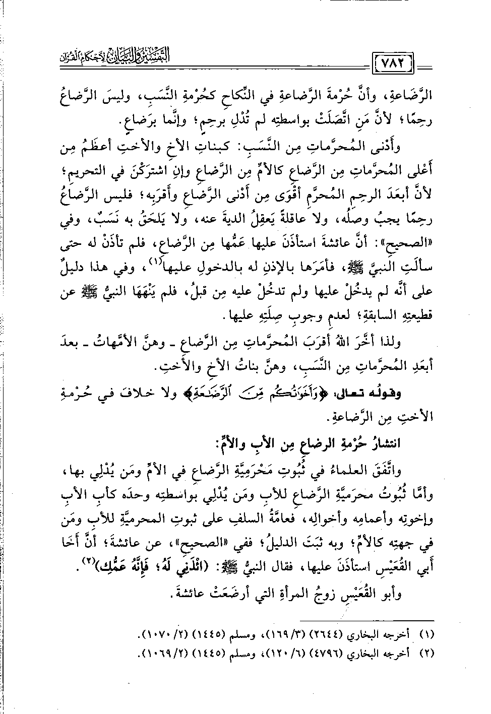 الرَّضاعةِ، وأنَّ حُرْمة الرَّضاعة في النِّكاح كحُرْمة النَّسبِ، وليس الرَّضاعُ رحِمًا؛ لأنَّ من اتَّصلت بواسطته لم تُدْل برحِمٍ؛ وإنَّما برَضاعٍ.
