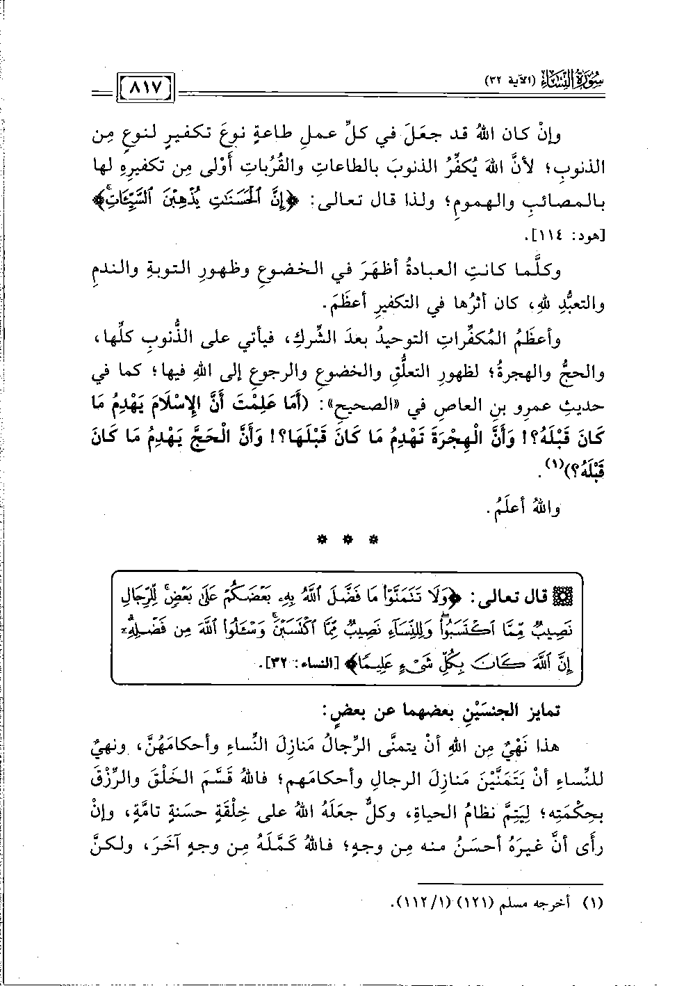 قال تعالى: {وَلَا تَتَمَنَّوْا مَا فَضَّلَ اللَّهُ بِهِ بَعْضَكُمْ عَلَى بَعْضٍ لِلرِّجَالِ نَصِيبٌ مِمَّا اكْتَسَبُوا وَلِلنِّسَاءِ نَصِيبٌ مِمَّا اكْتَسَبْنَ وَاسْأَلُوا اللَّهَ مِنْ فَضْلِهِ إِنَّ اللَّهَ كَانَ بِكُلِّ شَيْءٍ عَلِيمًا (٣٢)} [النساء: ٣٢].