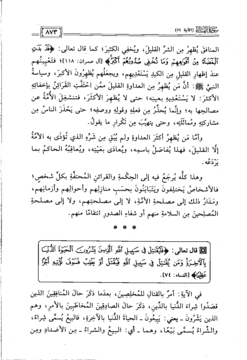 وهذا كله يُرجَعُ فيه إلى الحِكمةِ والقرائنِ المحتفَّةِ بكلِّ شخصٍ؛ فالأشخاصُ يَختلِفونَ ويتبَايُنونَ بحسَبِ منازِلهم وأحوالِهم وأزمانِهم، ومَدَارُ ذلك إلى مصلحةِ الأُمَّة، لا إلى مصلحتهم، ولا إلى مصلحةِ المُصلِحينَ مِن السلامةِ منهم أو شفاءِ الصدورِ انتقامًا منهم.