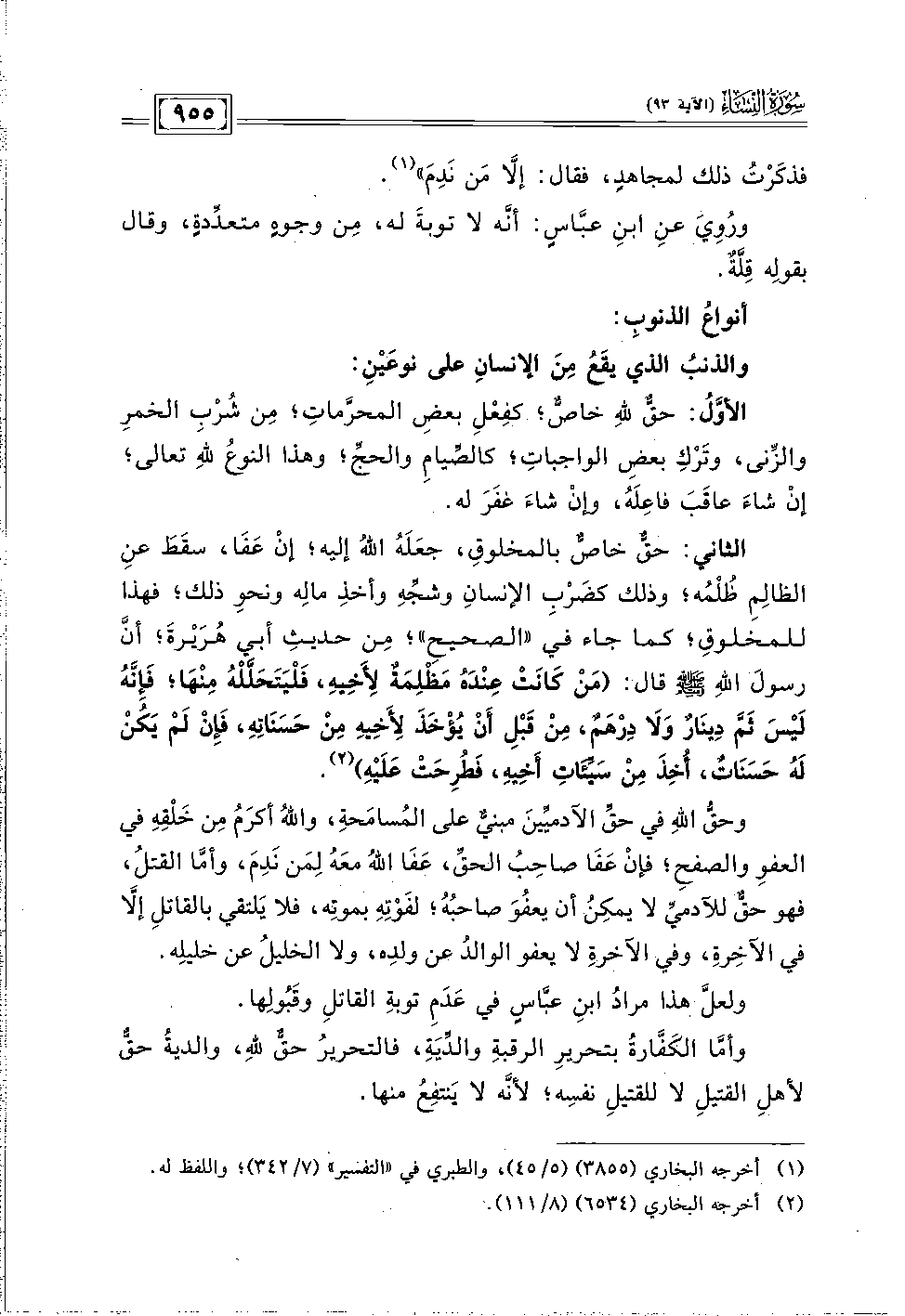 ولعلَّ هذا مرادُ ابنِ عبَّاسٍ في عَدَمِ توبةِ القاتلِ وقَبُولِها.