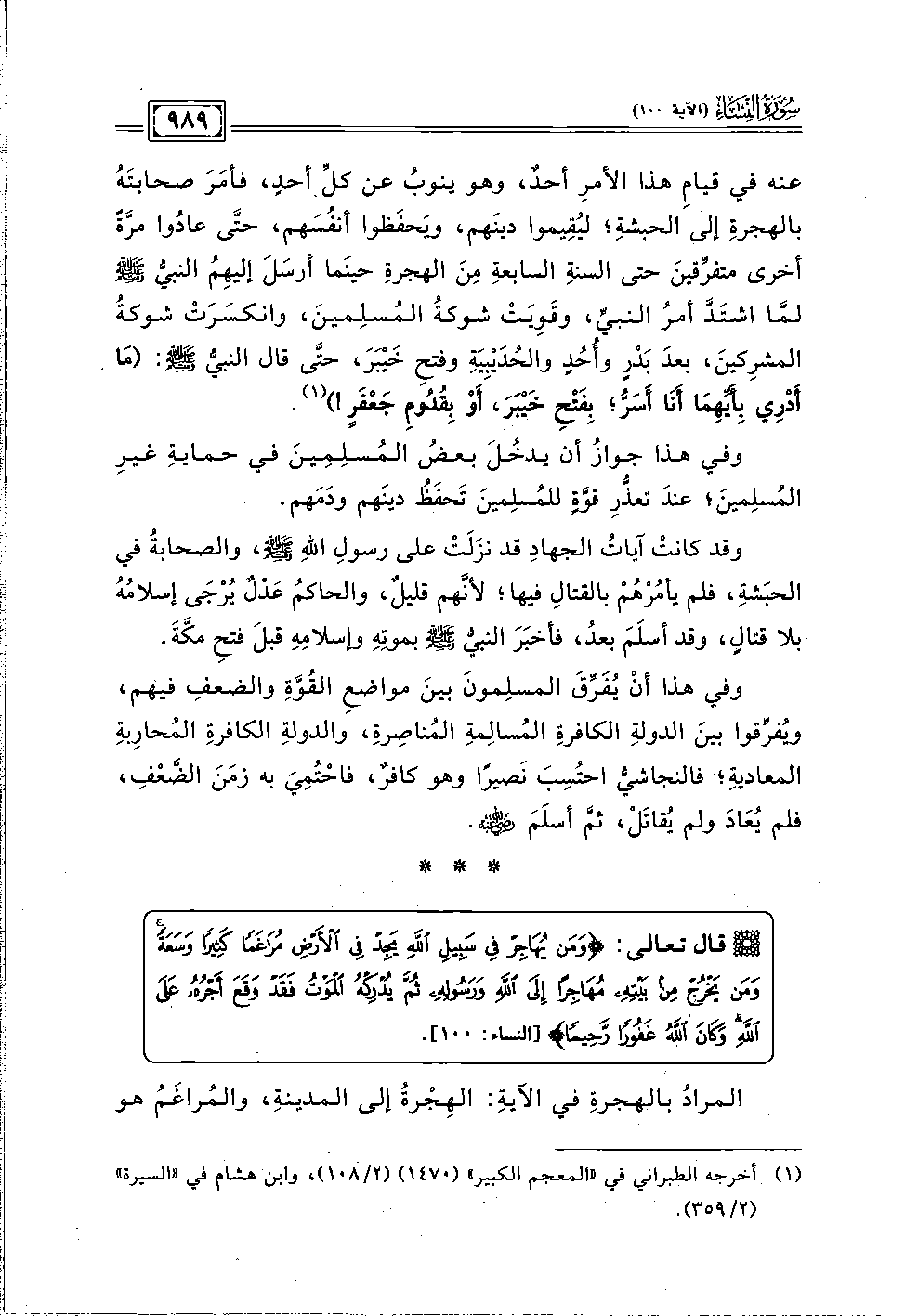 * قال تعالى. {وَمَنْ يُهَاجِرْ فِي سَبِيلِ اللَّهِ يَجِدْ فِي الْأَرْضِ مُرَاغَمًا كَثِيرًا وَسَعَةً وَمَنْ يَخْرُجْ مِنْ بَيْتِهِ مُهَاجِرًا إِلَى اللَّهِ وَرَسُولِهِ ثُمَّ يُدْرِكْهُ الْمَوْتُ فَقَدْ وَقَعَ أَجْرُهُ عَلَى اللَّهِ وَكَانَ اللَّهُ غَفُورًا رَحِيمًا (١٠٠)} [النساء: ١٠٠].