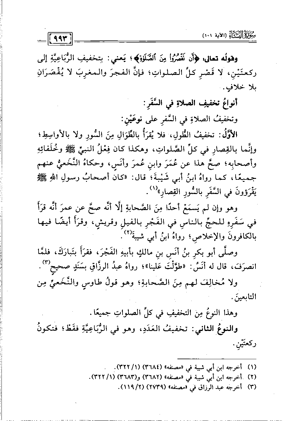 وتخفيف الصلاةِ في السَّفرِ عَلَى نوعَيْنِ: