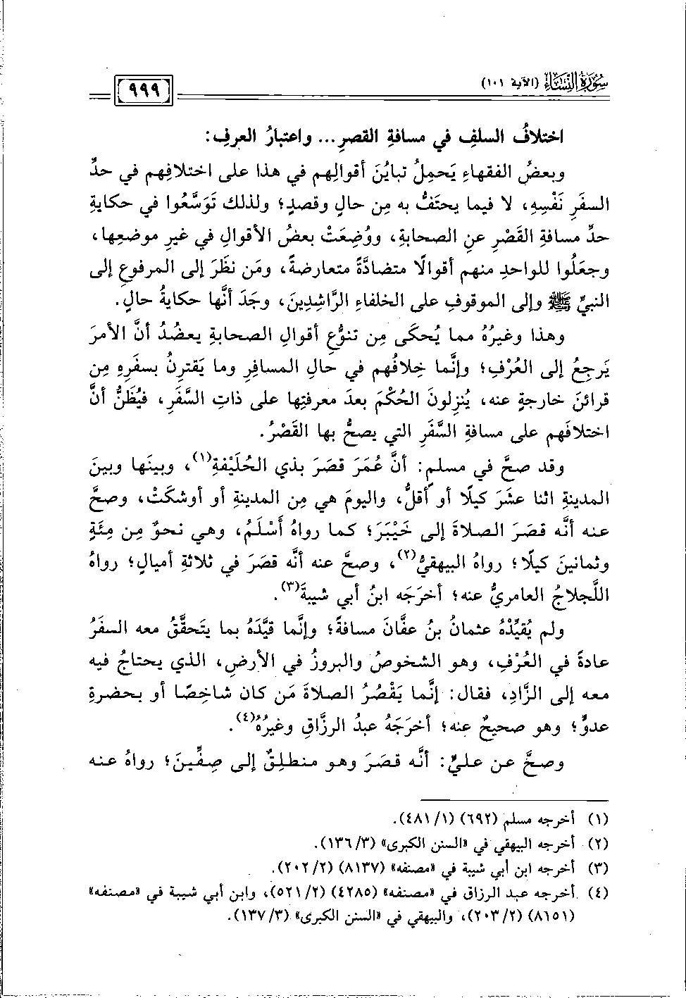اختلافُ السلفِ في مسافةِ القصرِ ... واعتبارُ العرفِ: