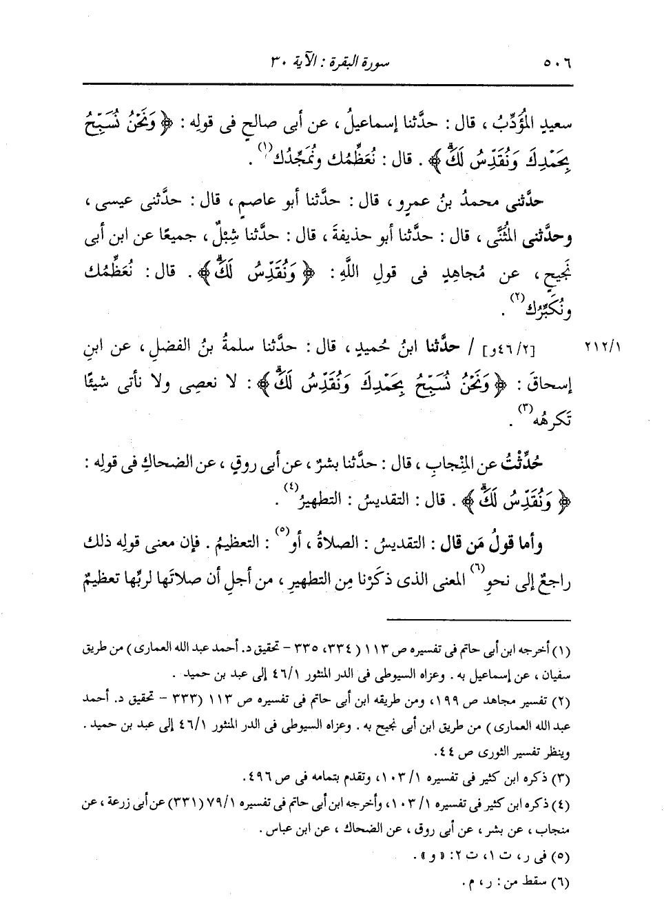 حَدَّثَنِي مُحَمَّدُ بْنُ عَمْرٍو، قَالَ: حَدَّثَنَا أَبُو عَاصِمٍ، قَالَ: حَدَّثَنِي عِيسَى، وَحَدَّثَنِي الْمُثَنَّى، قَالَ: حَدَّثَنَا أَبُو حُذَيْفَةَ، قَالَ: حَدَّثَنَا شِبْلٌ، جَمِيعًا، عَنِ ابْنِ أَبِي نَجِيحٍ، عَنْ مُجَاهِدٍ: فِي قَوْلِ اللَّهِ: " {§وَنُقَدِّسُ لَكَ} [البقرة: 30] قَالَ: نُعَظِّمُكَ وَنُكَبِّرُكَ "