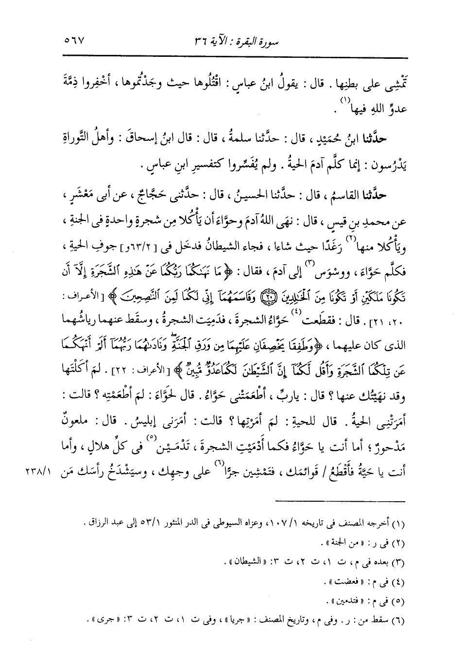 وَحَدَّثَنَا ابْنُ حُمَيْدٍ، قَالَ: حَدَّثَنَا سَلَمَةُ، قَالَ قَالَ ابْنُ إِسْحَاقَ: " §وَأَهْلُ التَّوْرَاةِ يَدْرُسُونَ: إِنَّمَا كَلَّمَ آدَمُ الْحَيَّةَ، وَلَمْ يُفَسِّرُوا كَتَفْسِيرِ ابْنِ عَبَّاسٍ "