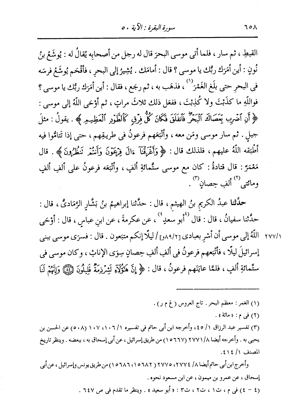وَحَدَّثَنِي عَبْدُ الْكَرِيمِ بْنُ الْهَيْثَمِ، قَالَ: حَدَّثَنَا إِبْرَاهِيمُ بْنُ بَشَّارٍ الرَّمَادِيُّ، قَالَ: حَدَّثَنَا سُفْيَانُ قَالَ: حَدَّثَنَا أَبُو سَعِيدٍ، عَنْ عِكْرِمَةَ، عَنِ ابْنِ عَبَّاسٍ، قَالَ: " أَوْحَى اللَّهُ جَلَّ وَعَزَّ إِلَى مُوسَى أَنْ أَسْرِ بِعِبَادِي لَيْلًا إِنَّكُمْ مُتَّبَعُونَ. قَالَ: فَسَرَى مُوسَى بِبَنِي إِسْرَائِيلَ لَيْلًا، §فَأَتْبَعَهُمْ فِرْعَوْنُ فِي أَلْفِ أَلْفِ حِصَانٍ سِوَى الْإِنَاثِ وَكَانَ مُوسَى فِي سِتِّمِائَةِ أَلْفٍ، فَلَمَّا عَايَنَهُمْ فِرْعَوْنُ قَالَ: {إِنَّ هَؤُلَاءِ لَشِرْذِمَةٌ قَلِيلُونَ وَإِنَّهُمْ لَنَا
