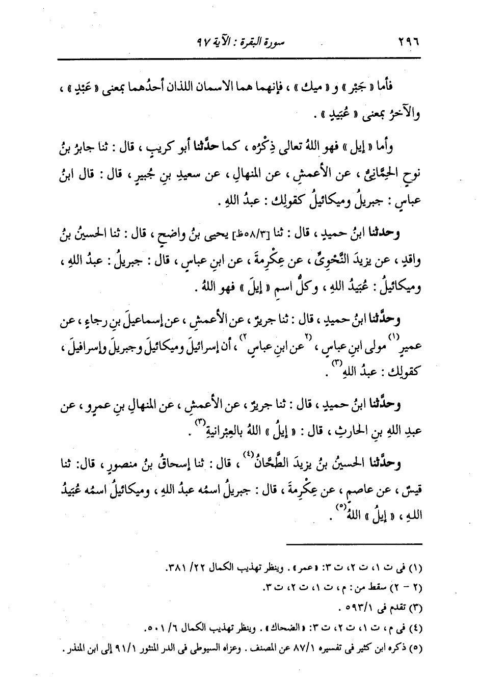 كَمَا حَدَّثَنَا أَبُو كُرَيْبٍ، قَالَ: ثنا جَرِيرُ بْنُ نُوحٍ الْحِمَّانِيُّ، عَنِ الْأَعْمَشِ، عَنِ الْمِنْهَالِ، عَنْ سَعِيدِ بْنِ جُبَيْرٍ، قَالَ: قَالَ ابْنُ عَبَّاسٍ: «§جِبْرِيلُ وَمِيكَائِيلُ كَقَوْلِكَ عَبْدُ اللَّهِ»