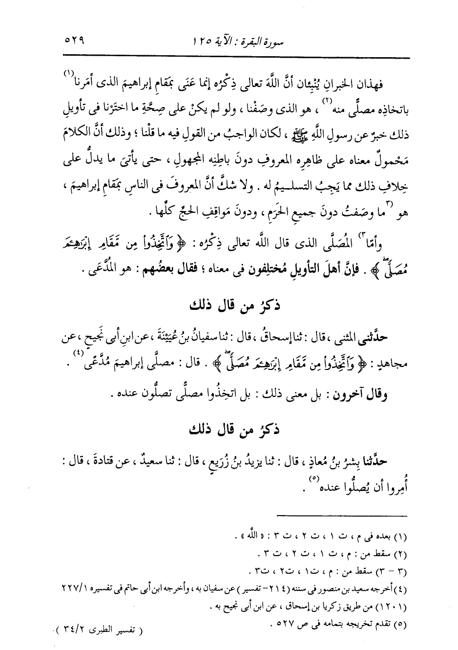 ذِكْرُ مَنْ قَالَ ذَلِكَ حَدَّثَنِي الْمُثَنَّى، قَالَ: ثَنَا إِسْحَاقُ، قَالَ: ثَنَا سُفْيَانُ بْنُ عُيَيْنَةَ، عَنِ ابْنِ أَبِي نَجِيحٍ، عَنْ مُجَاهِدٍ: " {§وَاتَّخِذُوا مِنْ مَقَامِ إِبْرَاهِيمَ مُصَلًّى} [البقرة: 125] قَالَ: مُصَلَّى إِبْرَاهِيمَ مُدَّعًى " وَقَالَ آخَرُونَ: مَعْنَى ذَلِكَ: اتَّخِذُوا مُصَلًّى تُصَلُّونَ عِنْدَهُ
