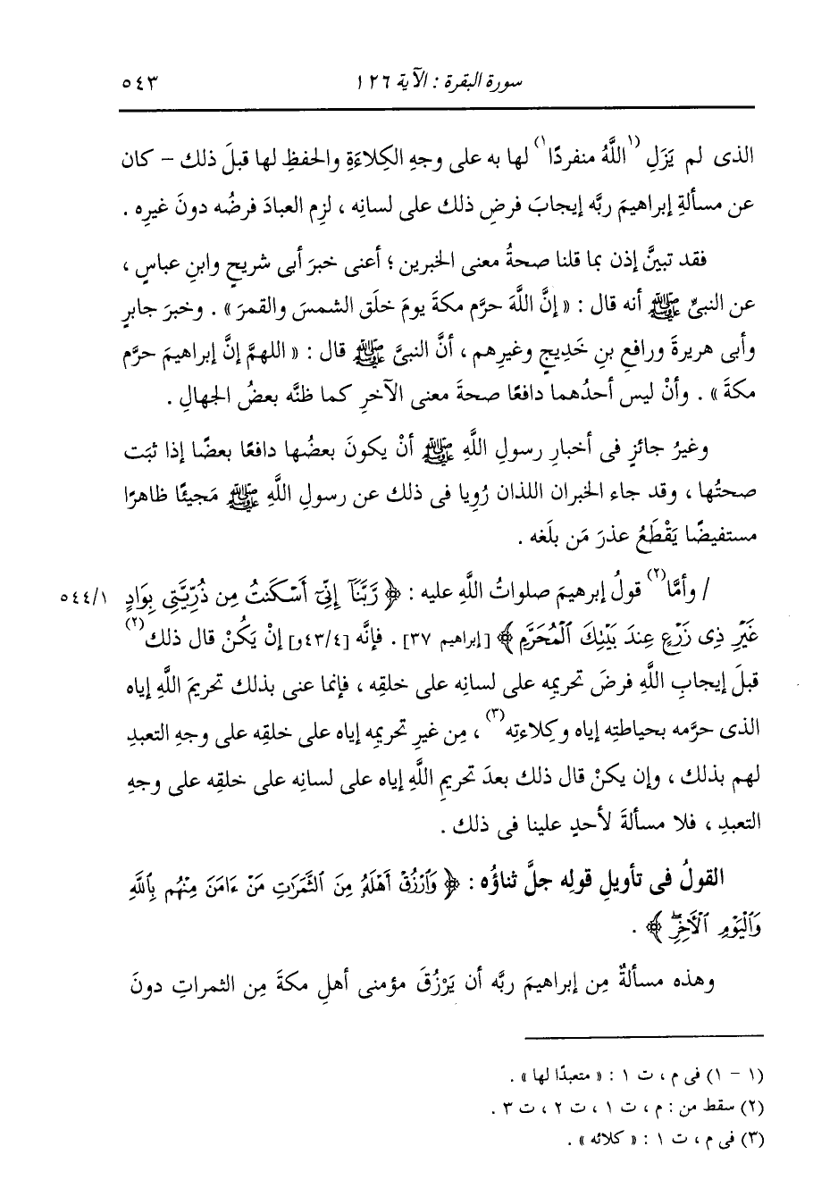 §الْقَوْلُ فِي تَأْوِيلِ قَوْلِهِ تَعَالَى: {وَارْزُقْ أَهْلَهُ مِنَ الثَّمَرَاتِ مَنْ آمَنَ مِنْهُمْ بِاللَّهِ وَالْيَوْمِ الْآخِرِ} [البقرة: 126] وَهَذِهِ مَسْأَلَةٌ مِنْ إِبْرَاهِيمَ رَبَّهُ أَنْ يَرْزُقَ مُؤْمِنِي أَهْلِ مَكَّةَ مِنَ الثَّمَرَاتِ دُونَ