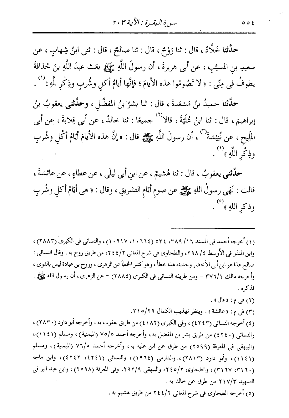 وَحَدَّثَنَا حُمَيْدُ بْنُ مَسْعَدَةَ، قَالَ: ثنا بِشْرُ بْنُ الْمُفَضَّلِ، وَحَدَّثَنِي يَعْقُوبُ بْنُ إِبْرَاهِيمَ، قَالَ: ثنا ابْنُ عُلَيَّةَ، قَالَا جَمِيعًا: ثنا خَالِدٌ، عَنْ أَبِي قِلَابَةَ، عَنْ أَبِي الْمَلِيحِ، عَنْ عَائِشَةَ، أَنَّ رَسُولَ اللَّهِ صَلَّى اللهُ عَلَيْهِ وَسَلَّمَ قَالَ: «إِنَّ §هَذِهِ الْأَيَّامَ أَيَّامُ أَكْلٍ وَشُرْبٍ وَذِكْرِ اللَّهِ»