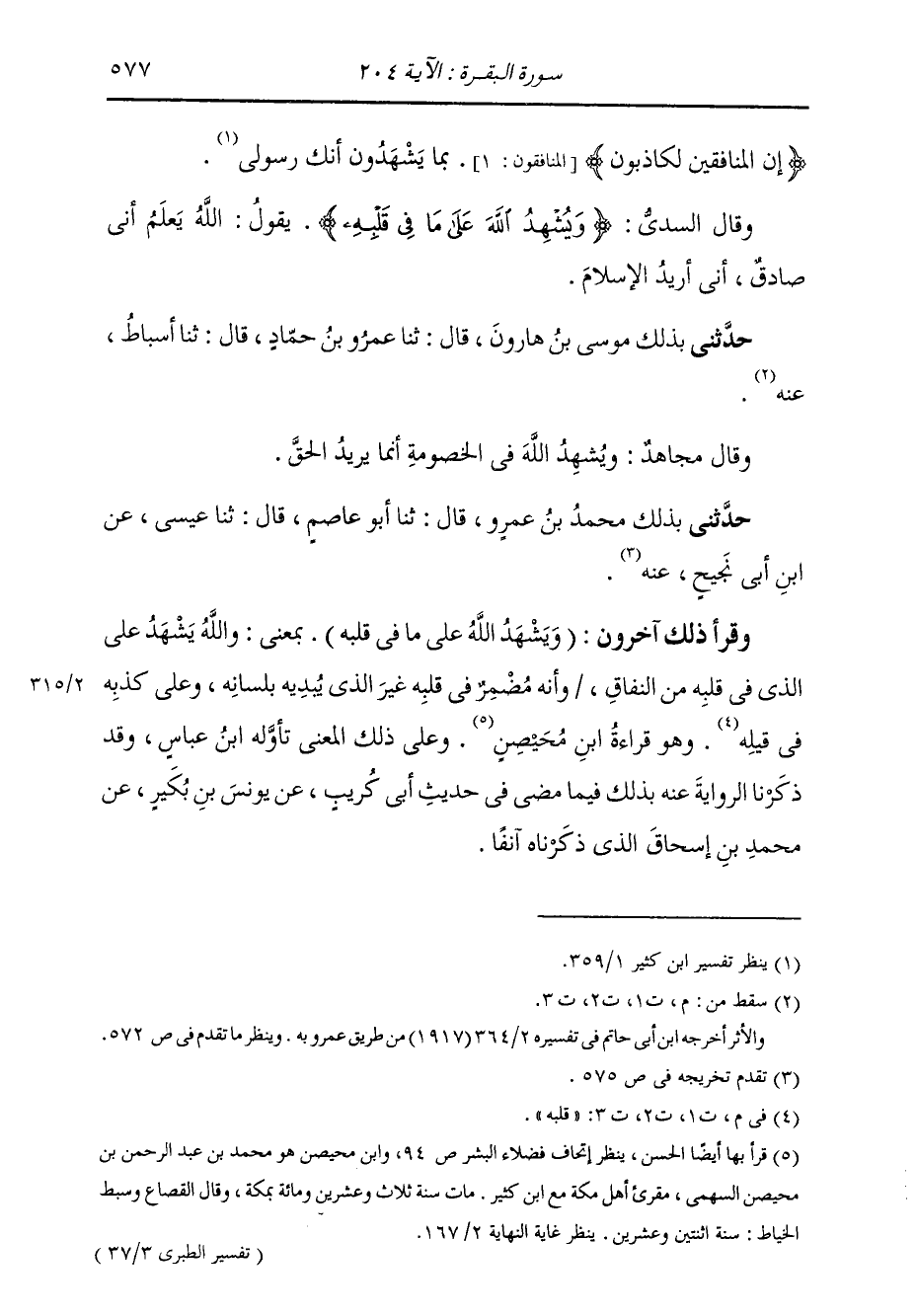حَدَّثَنِي بِذَلِكَ مُوسَى بْنَ هَارُونَ، قَالَ: ثنا عَمْرُو بْنُ حَمَّادٍ، عَنْ أَسْبَاطِ، وَقَالَ مُجَاهِدٌ: «§وَيُشْهِدُ اللَّهَ فِي الْخُصُومَةِ، إِنَّمَا يُرِيدُ الْحَقَّ» حَدَّثَنِي بِذَلِكَ مُحَمَّدُ بْنُ عَمْرٍو، قَالَ: ثنا أَبُو عَاصِمٍ، قَالَ: ثنا عِيسَى، عَنِ ابْنِ أَبِي نَجِيحٍ، عَنْهُ وَقَرَأَ ذَلِكَ آخَرُونَ: «وَيُشْهِدُ اللَّهَ عَلَى مَا فِي قَلْبِهِ» بِمَعْنَى: وَاللَّهُ يَشْهَدُ عَلَى الَّذِي فِي قَلْبِهِ مِنَ النِّفَاقِ، وَأَنَّهُ مُضْمِرٌ فِي قَلْبِهِ غَيْرَ الَّذِي يُبْدِيهِ بِلِسَانِهِ وَعَلَى كَذِبِهِ فِي قَلْبِهِ. وَهِيَ قِرَاءَةُ ابْنِ مُحَيْصِنٍ، وَعَلَى ذَلِكَ الْمَعْنَى تَأَوَّلَهُ ابْنُ عَبَّاسٍ،. وَقَدْ ذَكَرْنَا الرِّوَايَةَ عَنْهُ بِذَلِكَ فِيمَا مَضَى فِي حَدِيثِ أَبِي كُرَيْبٍ، عَنْ يُونُسَ بْنِ بُكَيْرٍ، عَنْ مُحَمَّدِ بْنِ إِسْحَاقَ، الَّذِي ذَكَرْنَاهُ آنِفًا. -[578]- وَالَّذِي نَخْتَارُ فِي ذَلِكَ مِنْ قَوْلِ الْقُرَّاءِ قِرَاءَةَ مَنْ قَرَأَ: {وَيُشْهِدُ اللَّهَ عَلَى مَا فِي قَلْبِهِ} [البقرة: 204] بِمَعْنَى يَسْتَشْهِدُ اللَّهَ عَلَى مَا فِي قَلْبِهِ، لِإِجْمَاعِ الْحُجَّةِ مِنَ الْقُرَّاءِ عَلَيْهِ