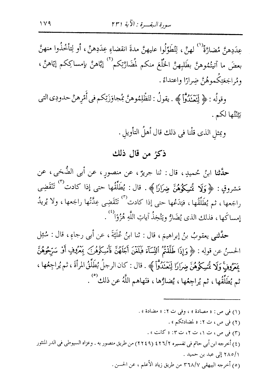 حَدَّثَنِي يَعْقُوبُ بْنُ إِبْرَاهِيمَ، قَالَ: ثنا ابْنُ عُلَيَّةَ، عَنْ أَبِي رَجَاءٍ، قَالَ: سُئِلَ الْحَسَنُ، عَنْ قَوْلِهِ تَعَالَى: " {§وَإِذَا طَلَّقْتُمُ النِّسَاءَ فَبَلَغْنَ أَجَلَهُنَّ فَأَمْسِكُوهُنَّ بِمَعْرُوفٍ أَوْ سَرِّحُوهُنَّ بِمَعْرُوفٍ وَلَا تُمْسِكُوهُنَّ ضِرَارًا لِتَعْتَدُوا} [البقرة: 231] قَالَ: كَانَ الرَّجُلُ يُطَلِّقُ الْمَرْأَةَ، ثُمَّ يُرَاجِعُهَا، ثُمَّ يُطَلِّقُهَا، ثُمَّ يُرَاجِعُهَا يُضَارُّهَا؛ فَنَهَاهُمُ اللَّهُ عَنْ ذَلِكَ "