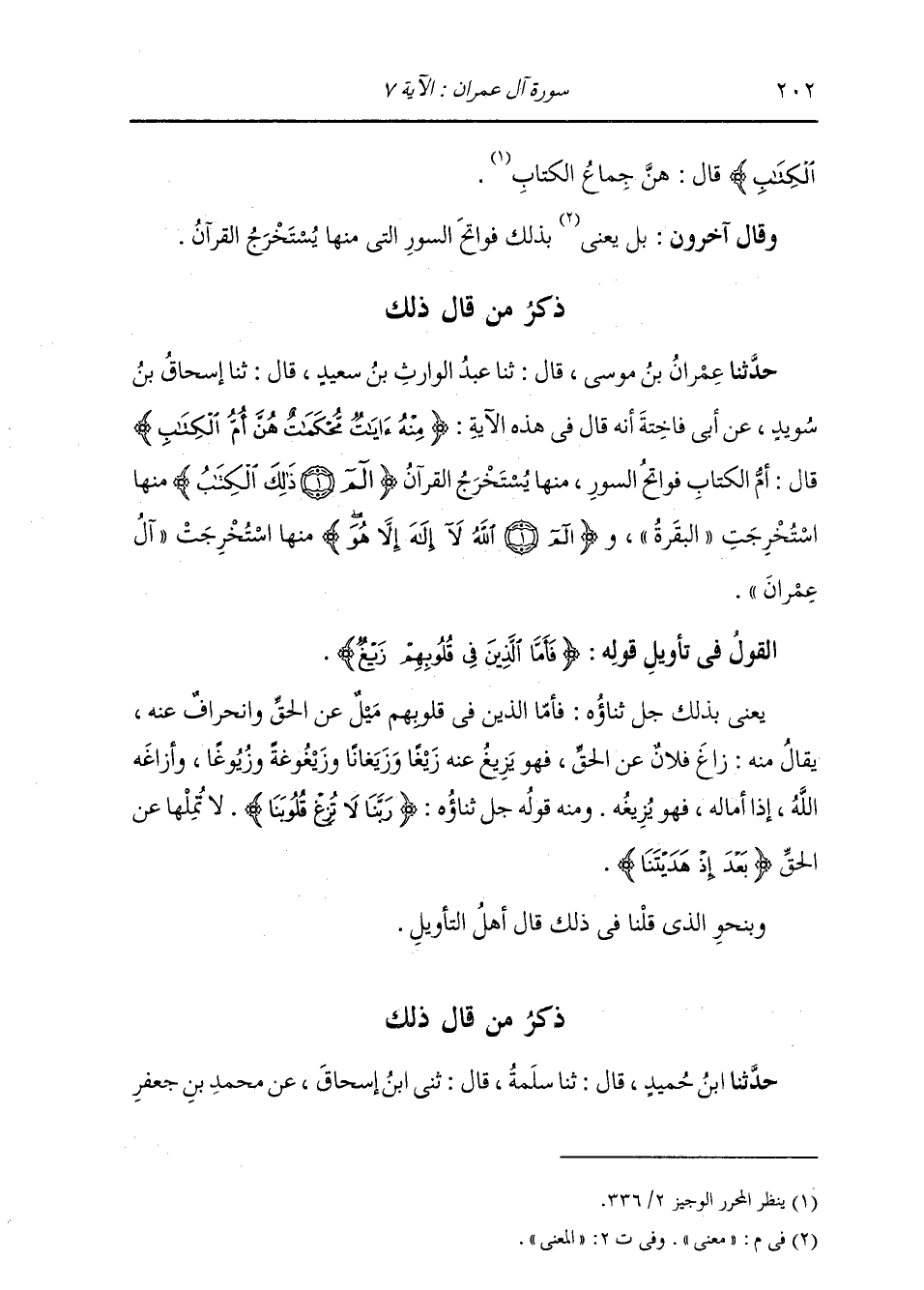 ذِكْرُ مَنْ قَالَ ذَلِكَ: حَدَّثَنَا ابْنُ حُمَيْدٍ، قَالَ: ثنا سَلَمَةُ، قَالَ: ثني ابْنُ إِسْحَاقَ، عَنْ مُحَمَّدِ بْنِ جَعْفَرِ -[203]- بْنِ الزُّبَيْرِ: {§فَأَمَّا الَّذِينَ فِي قُلُوبِهِمْ زَيْغٌ} [آل عمران: 7] «أَيْ مَيْلٌ عَنِ الْهُدَى»