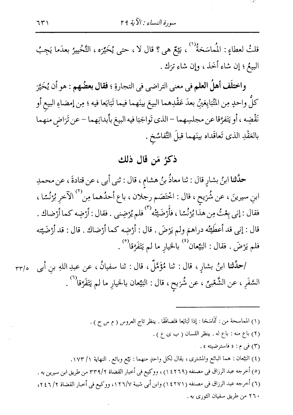 حَدَّثَنَا ابْنُ بَشَّارٍ قَالَ: ثنا مُؤَمَّلٌ قَالَ: ثنا سُفْيَانُ , عَنْ عَبْدِ اللَّهِ بْنِ أَبَى السَّفَرِ , عَنِ الشَّعْبِيِّ , عَنْ شُرَيْحٍ قَالَ: «§الْبَيِّعَانِ بِالْخِيَارِ مَا لَمْ يَتَفَرَّقَا» -[632]- حَدَّثَنَا مُحَمَّدُ بْنُ الْمُثَنَّى قَالَ: ثنا مُحَمَّدُ بْنُ جَعْفَرٍ , عَنْ شُعْبَةَ , عَنِ الْحَكَمِ , عَنْ شُرَيْحٍ , مِثْلَهُ