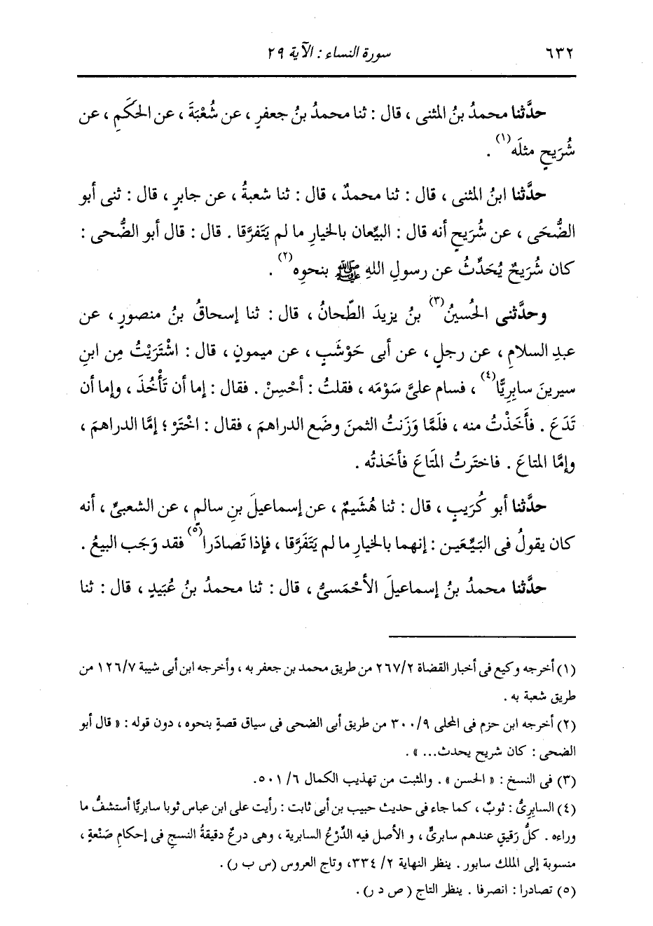 حَدَّثَنَا ابْنُ الْمُثَنَّى , قَالَ: ثنا مُحَمَّدٌ , قَالَ: ثنا شُعْبَةُ , عَنْ جَابِرٍ , قَالَ: ثني أَبُو الضُّحَى , عنْ شُرَيْحٍ , أَنَّهُ قَالَ: «§الْبَيِّعَانِ بِالْخِيَارِ مَا لَمْ يَتَفَرَّقَا» قَالَ: قَالَ أَبُو الضُّحَى: كَانَ شُرَيْحٌ يُحَدِّثُ عَنْ رَسُولِ اللَّهِ صَلَّى اللهُ عَلَيْهِ وَسَلَّمَ , بِنَحْوِهِ