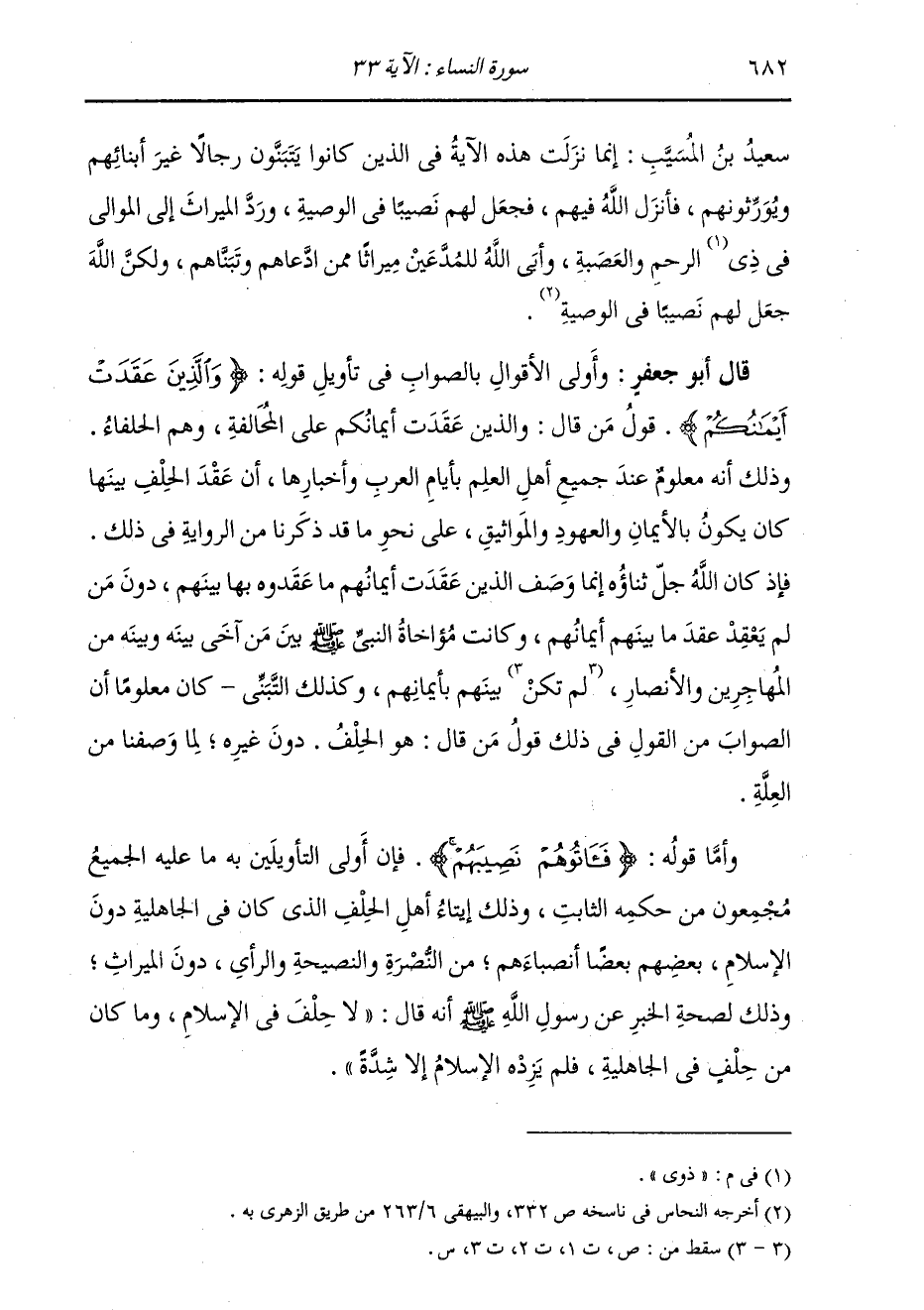 وَذَلِكَ لِصِحَّةِ الْخَبَرِ عَنْ رَسُولِ اللَّهِ صَلَّى اللهُ عَلَيْهِ وَسَلَّمَ , أَنَّهُ قَالَ: «§لَا حِلْفَ فِي الْإِسْلَامِ , وَمَا كَانَ مِنْ حِلْفٍ فِي الْجَاهِلِيَّةِ فَلَمْ يَزِدْهُ الْإِسْلَامُ إِلَّا شِدَّةً» -[683]- حَدَّثَنَا بِذَلِكَ أَبُو كُرَيْبٍ , قَالَ: ثنا وَكِيعٌ , عَنْ شَرِيكٍ , عَنْ سِمَاكٍ , عَنْ عِكْرِمَةَ , عَنِ ابْنِ عَبَّاسٍ , عَنْ رَسُولِ اللَّهِ صَلَّى اللهُ عَلَيْهِ وَسَلَّمَ