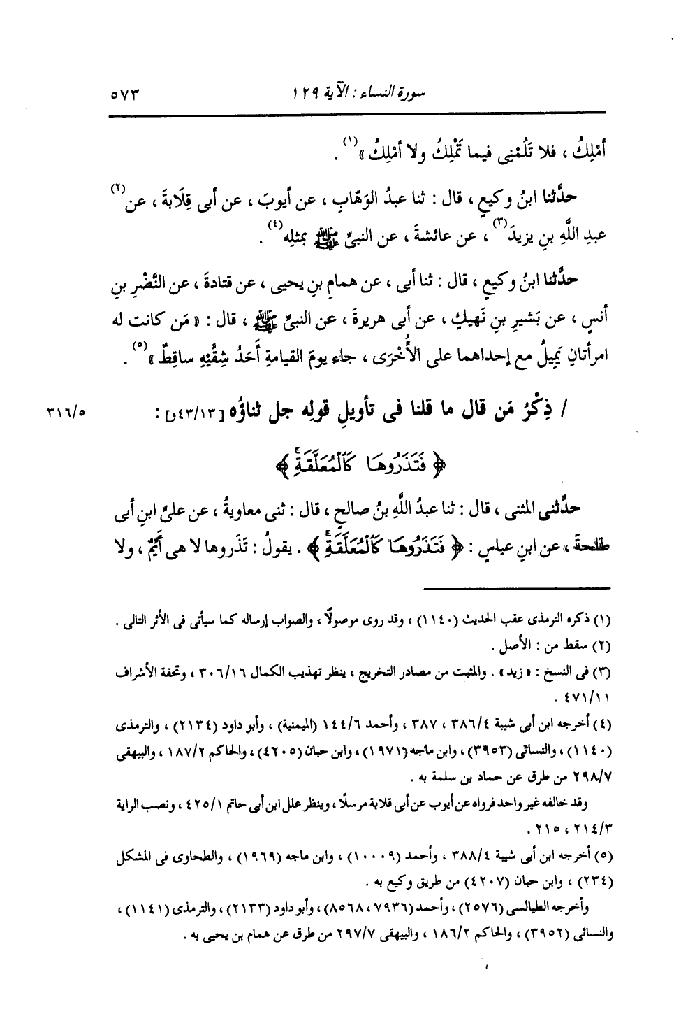 §ذِكْرُ مَنْ قَالَ مَا قُلْنَا فِي تَأْوِيلِ قَوْلِهِ: {فَتَذَرُوهَا كَالْمُعَلَّقَةِ} [النساء: 129]