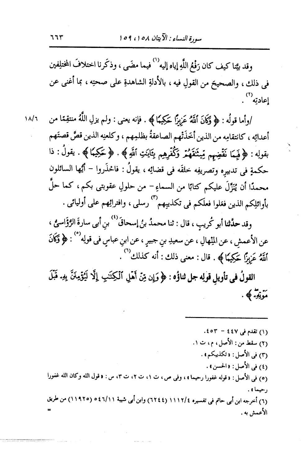 حَدَّثَنَا أَبُو كُرَيْبٍ , قَالَ: ثنا مُحَمَّدُ بْنُ إِسْحَاقَ بْنِ أَبِي سَارَةَ الرُّؤَاسِيُّ , عَنِ الْأَعْمَشِ , عَنِ الْمِنْهَالِ , عَنْ سَعِيدِ بْنِ جُبَيْرٍ , عَنِ ابْنِ عَبَّاسٍ , فِي قَوْلِهِ: {§وَكَانَ اللَّهُ عَزِيزًا حَكِيمًا} [النساء: 158] قَالَ: " مَعْنَى ذَلِكَ: أَنَّهُ كَذَلِكَ "