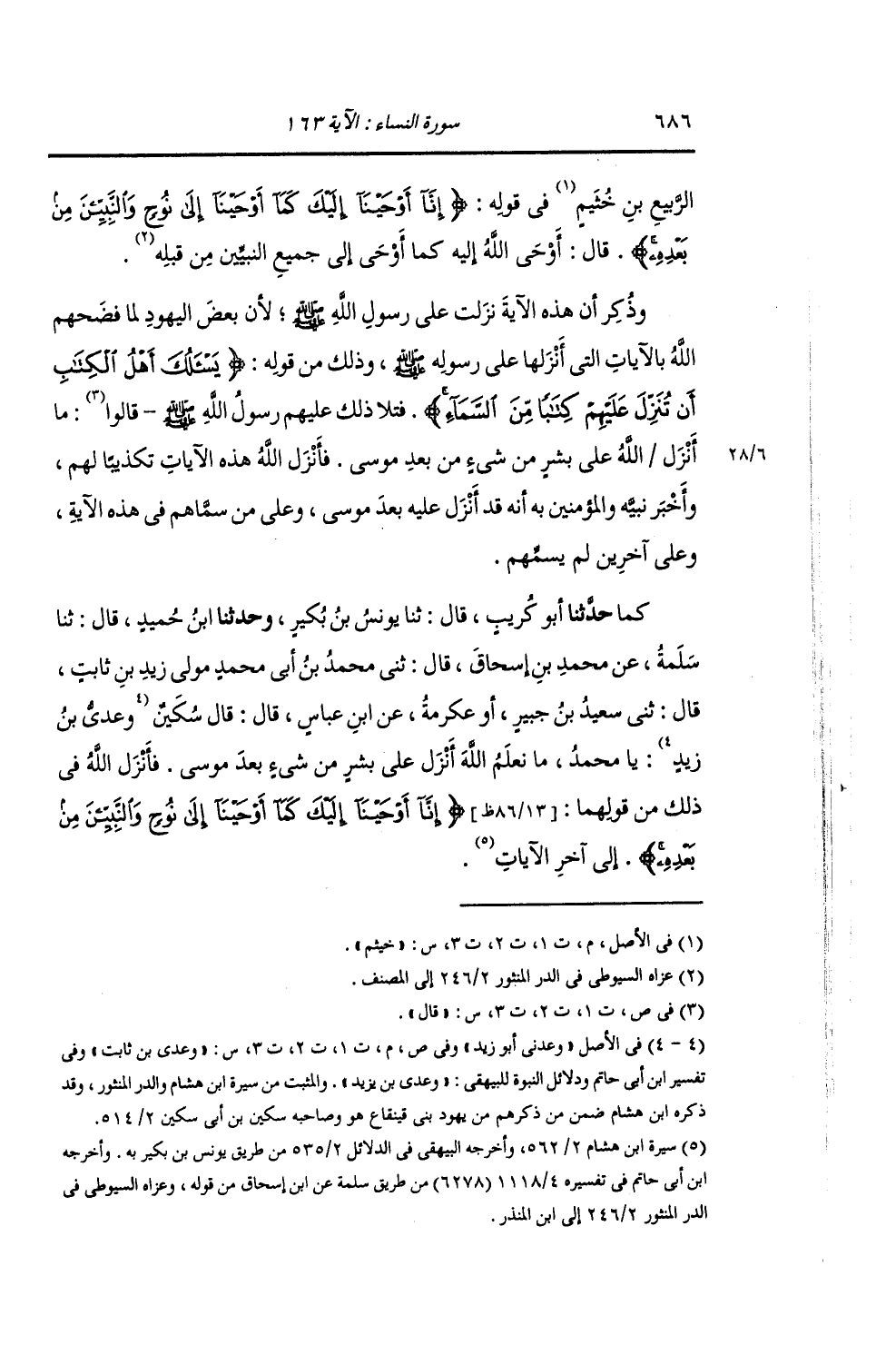 حَدَّثَنَا أَبُو كُرَيْبٍ , قَالَ: ثنا يُونُسُ بْنُ بُكَيْرٍ , وَحَدَّثَنَا ابْنُ حُمَيْدٍ , قَالَ: ثنا سَلَمَةُ , عَنْ مُحَمَّدِ بْنِ إِسْحَاقَ , قَالَ: ثني مُحَمَّدُ بْنُ أَبِي مُحَمَّدٍ، مَوْلَى زَيْدِ بْنِ ثَابِتٍ , قَالَ: ثني سَعِيدُ بْنُ جُبَيْرٍ أَوْ عِكْرِمَةُ , عَنِ ابْنِ عَبَّاسٍ , قَالَ: قَالَ سُكَيْنٌ وَعَدِيُّ بْنُ زَيْدٍ: يَا مُحَمَّدُ مَا نَعْلَمُ اللَّهَ أَنْزَلَ عَلَى بَشَرٍ مِنْ شَيْءٍ بَعْدَ مُوسَى , فَأَنْزَلَ اللَّهُ فِي ذَلِكَ مِنْ قَوْلِهِمَا: {§إِنَّا أَوْحَيْنَا إِلَيْكَ كَمَا أَوْحَيْنَا إِلَى نُوحٍ وَالنَّبِيِّينَ مِنْ بَعْدِهِ} [النساء: 163] إِلَى آخِرِ الْآيَاتِ " -[687]- وَقَالَ آخَرُونَ: بَلْ قَالُوا: لَمَّا أَنْزَلَ اللَّهُ الْآيَاتِ الَّتِي قَبْلَ هَذِهِ فِي ذِكْرِهِمْ مَا أَنْزَلَ اللَّهُ عَلَى بَشَرٍ مِنْ شَيْءٍ , وَلَا عَلَى مُوسَى , وَلَا عَلَى عِيسَى , فَأَنْزَلَ اللَّهُ جَلَّ ثَنَاؤُهُ: {وَمَا قَدَرُوا اللَّهَ حَقَّ قَدْرِهِ إِذْ قَالُوا مَا أَنْزَلَ اللَّهُ عَلَى بَشَرٍ مِنْ شَيْءٍ} [الأنعام: 91] وَلَا عَلَى مُوسَى , وَلَا عَلَى عِيسَى.