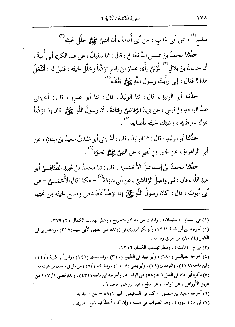 حَدَّثَنَا مُحَمَّدُ بْنُ عِيسَى الدَّامِغَانِيُّ , قَالَ: ثنا سُفْيَانُ , عَنْ عَبْدِ الْكَرِيمِ أَبِي أُمَيَّةَ: أَنَّ حَسَّانَ بْنَ بِلَالٍ الْمُزَنِيَّ , رَأَى عَمَّارَ بْنَ يَاسِرٍ §تَوَضَّأَ وَخَلَّلَ لِحْيَتَهُ , فَقِيلَ لَهُ: أَتَفْعَلُ هَذَا؟ فَقَالَ: إِنِّي رَأَيْتُ رَسُولَ اللَّهِ صَلَّى اللهُ عَلَيْهِ وَسَلَّمَ يَفْعَلُهُ "