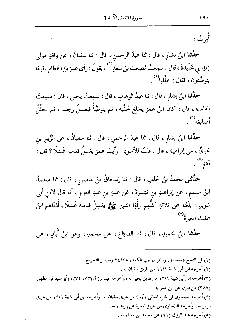 حَدَّثَنَا ابْنُ بَشَّارٍ , قَالَ: ثنا عَبْدُ الرَّحْمَنِ , قَالَ: ثنا سُفْيَانُ , عَنِ الزُّبَيْرِ بْنِ عَدِيٍّ , عَنْ إِبْرَاهِيمَ , قَالَ: قُلْتُ لِلْأَسْوَدِ: رَأَيْتَ عُمَرَ §يَغْسِلُ قَدَمَيْهِ غَسْلًا؟ قَالَ: نَعَمْ "