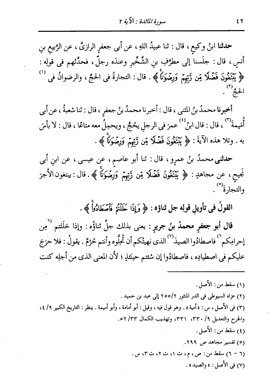 حَدَّثَنَا ابْنُ وَكِيعٍ , قَالَ: ثنا عُبَيْدُ اللَّهِ , عَنْ أَبِي جَعْفَرٍ الرَّازِيِّ , عَنِ الرَّبِيعِ بْنِ أَنَسٍ , قَالَ: جَلَسْنَا إِلَى مُطَرِّفِ بْنِ الشِّخِّيرِ , وَعِنْدَهُ رَجُلٌ , فَحَدَّثَهُمْ فِي قَوْلِهِ: {§يَبْتَغُونَ فَضْلًا مِنْ رَبِّهِمْ وَرِضْوَانًا} [المائدة: 2] قَالَ: «التِّجَارَةُ فِي الْحَجِّ , وَالرِّضْوَانُ فِي الْحَجِّ»