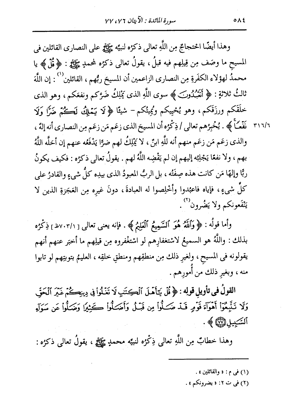 §الْقَوْلُ فِي تَأْوِيلِ قَوْلِهِ تَعَالَى: {قُلْ يَا أَهْلَ الْكِتَابِ لَا تَغْلُوا فِي دِينِكُمْ غَيْرَ الْحَقِّ وَلَا تَتَّبِعُوا أَهْوَاءَ قَوْمٍ قَدْ ضَلُّوا مِنْ قَبْلُ وَأَضَلُّوا كَثِيرًا وَضَلُّوا عَنْ سَوَاءِ السَّبِيلِ} [المائدة: 77] وَهَذَا خِطَابٌ مِنَ اللَّهِ تَعَالَى ذِكْرُهُ لِنَبِيِّهِ مُحَمَّدٍ صَلَّى اللهُ عَلَيْهِ وَسَلَّمَ. يَقُولُ تَعَالَى ذِكْرُهُ: